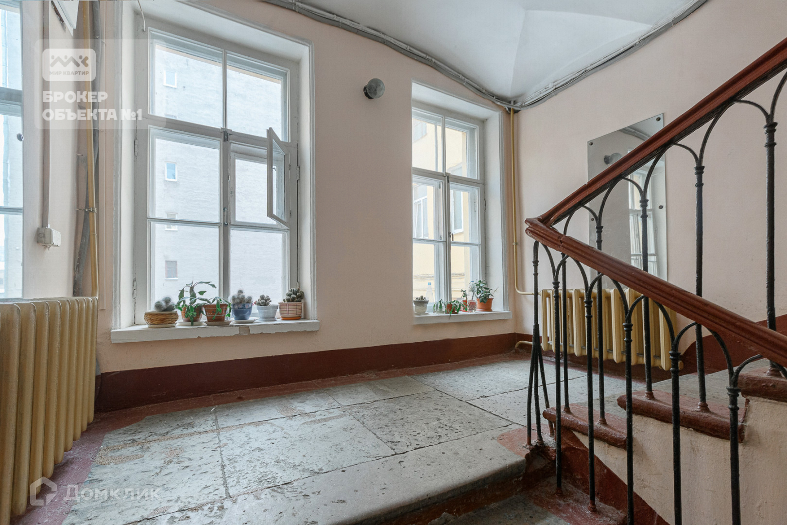 Парадный вход с улицы, чистая лестница после ремонта, мало соседей.