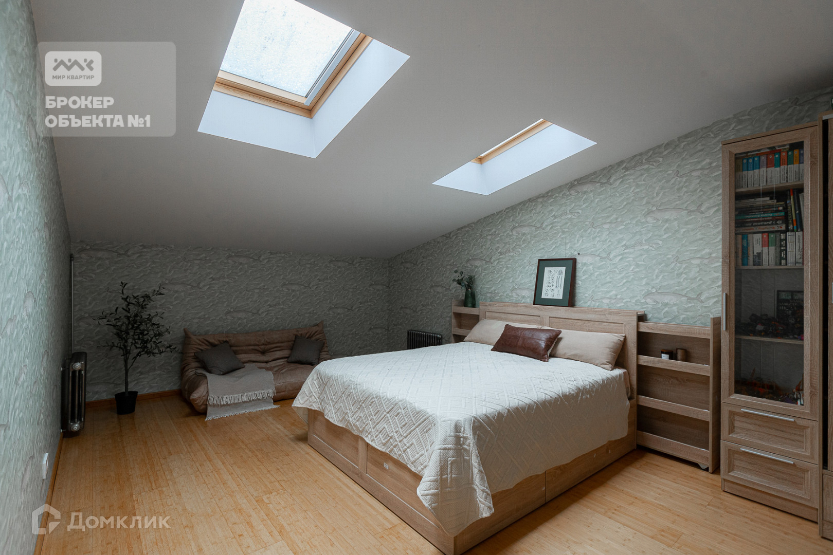 на 2 уровне еще 5 светлых комнат с мансардными окнами, большая ванная комната с окном.