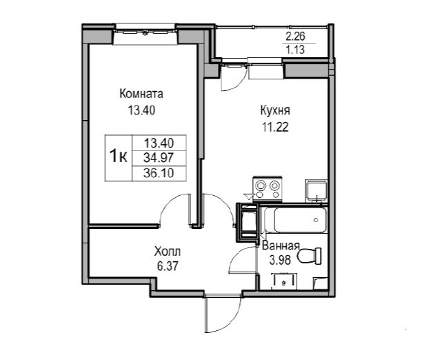 Общая площадь 36.1 м2