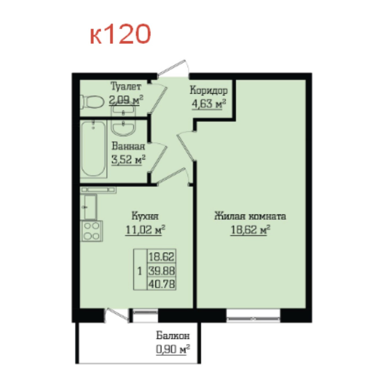 Общая площадь 40 м2