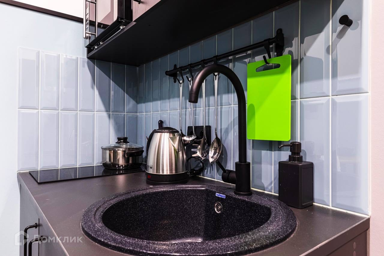 Кухня, варочная панель, микроволновка и кухонные принадлежности в каждой студии