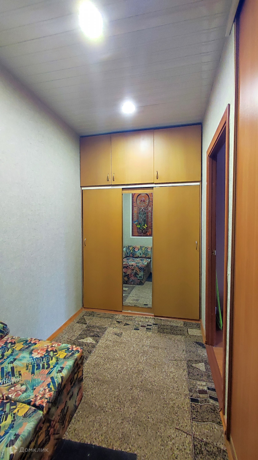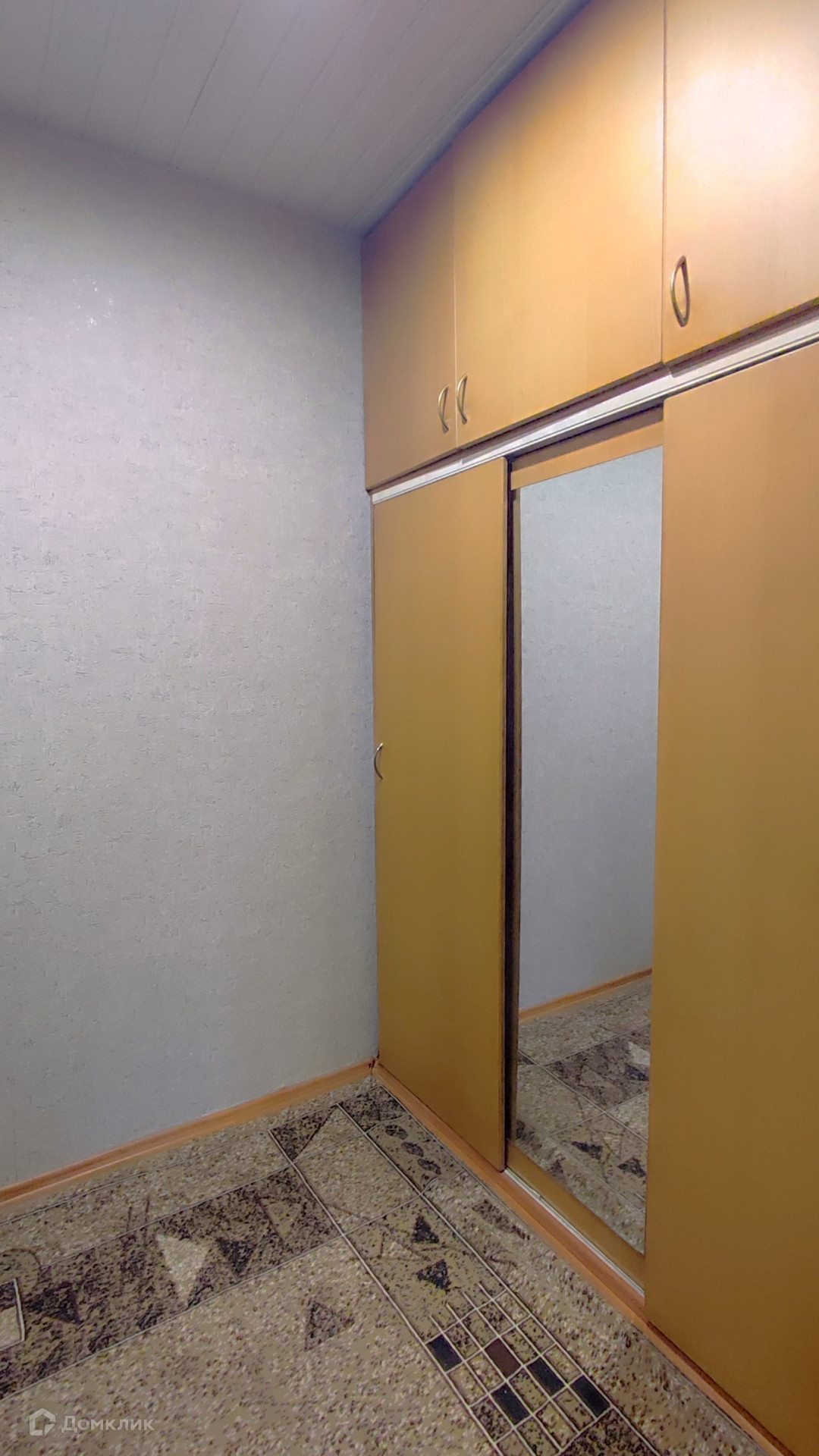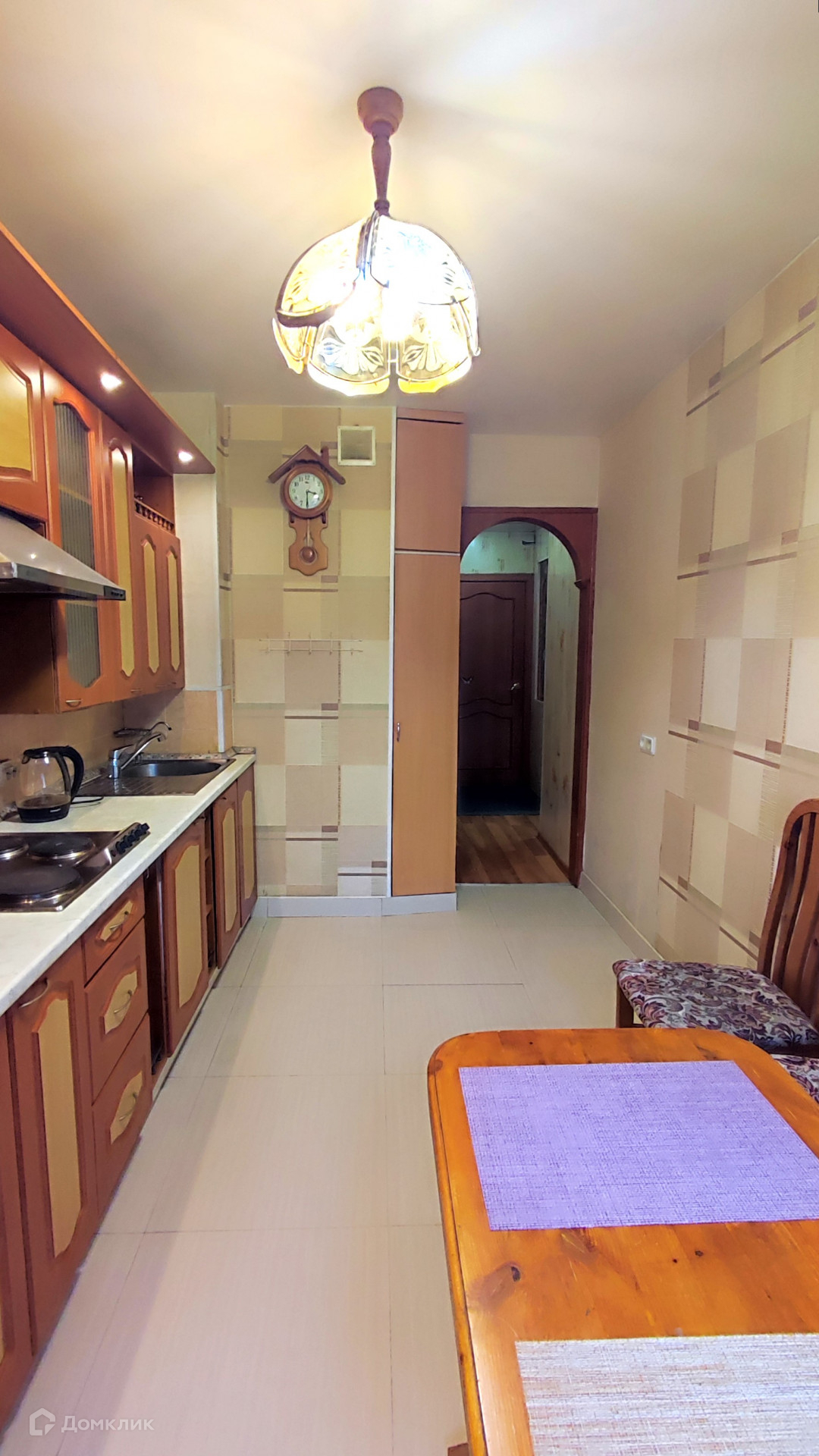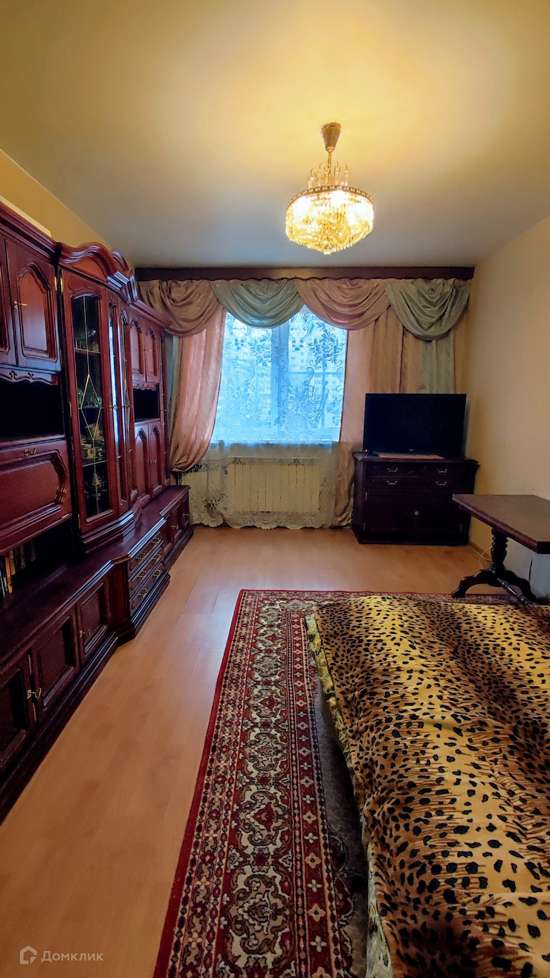 Для новых хозяев остается встроенная кухня, мебель в комнате, встроенные шкафы-купе.