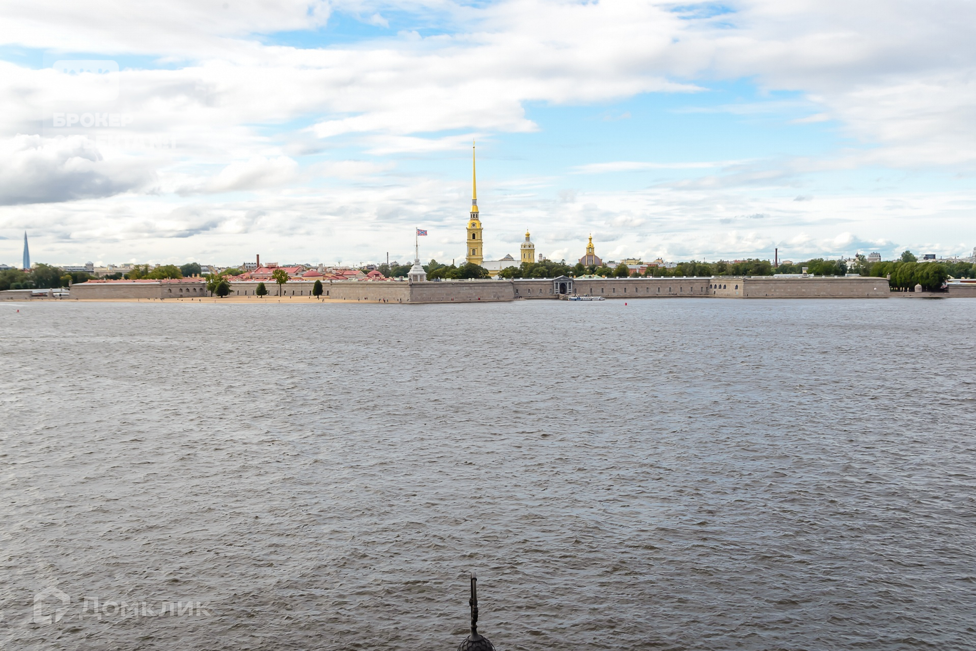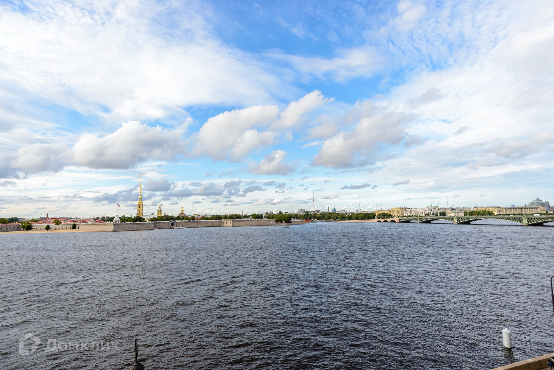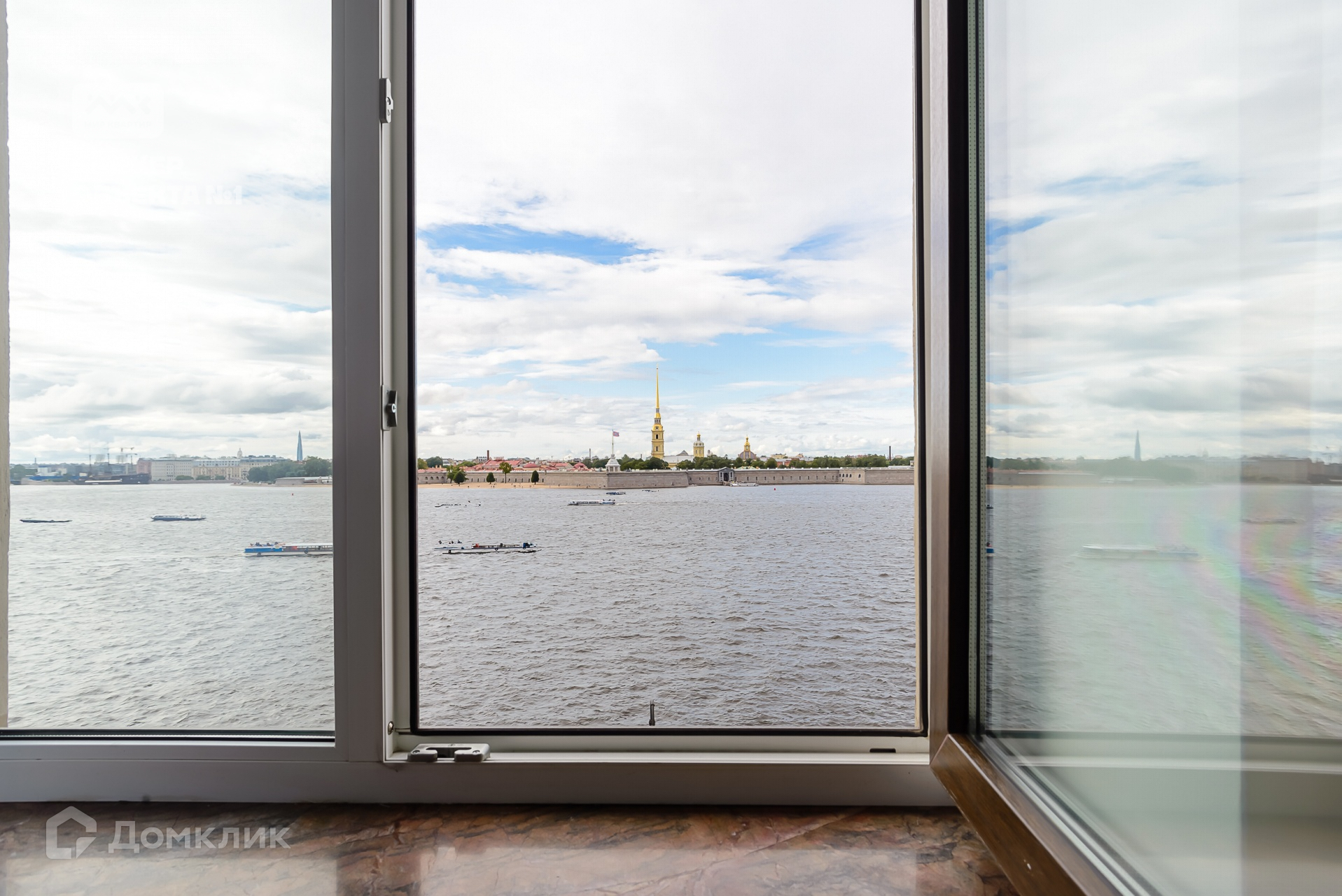 Квартира расположена на четвертом этаже четырех этажного дома без лифта, прошедшего реконструкцию в 1947 году. Из ее окон открывается великолепный вид на Дворцовую набережную, простор Невы, Петропавловскую крепость, ажурный силуэт Троицкого моста.