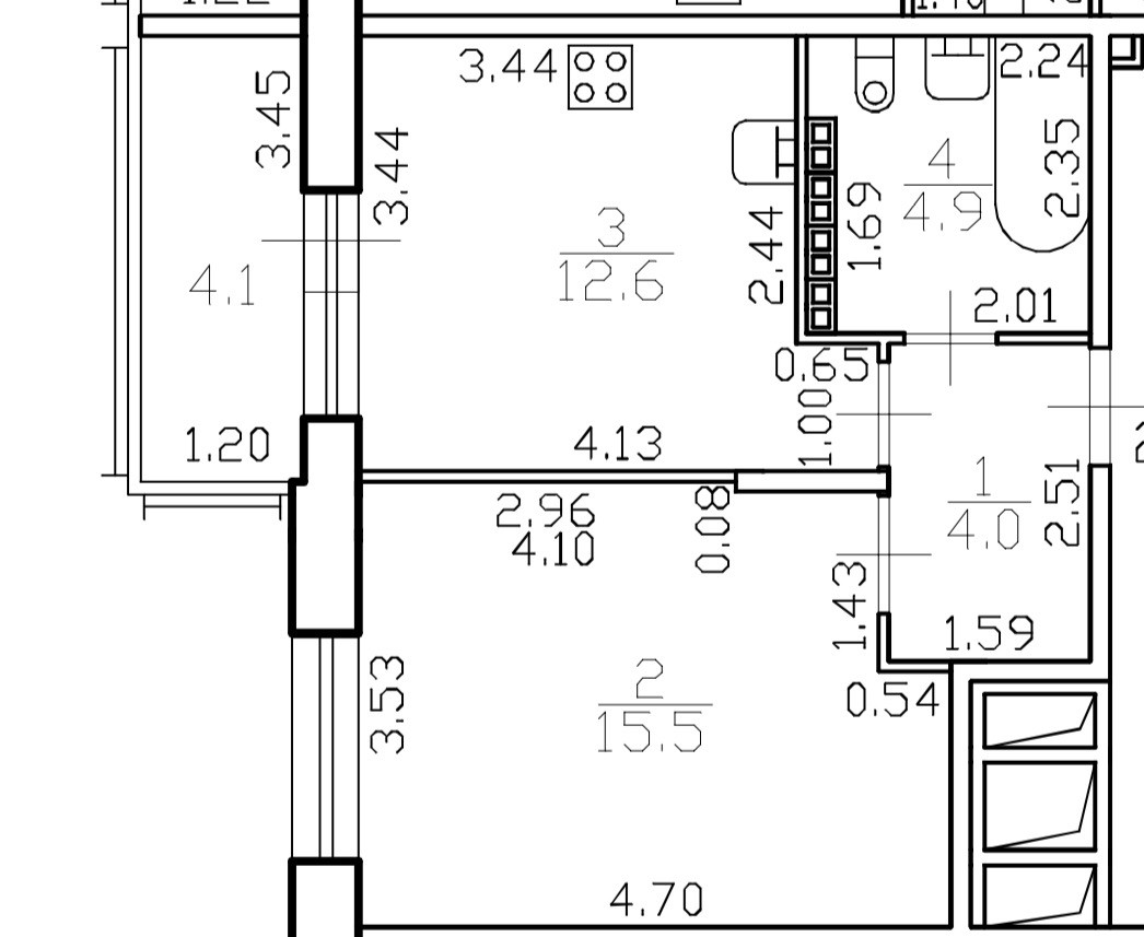 Площадь кухни 12.6 м2