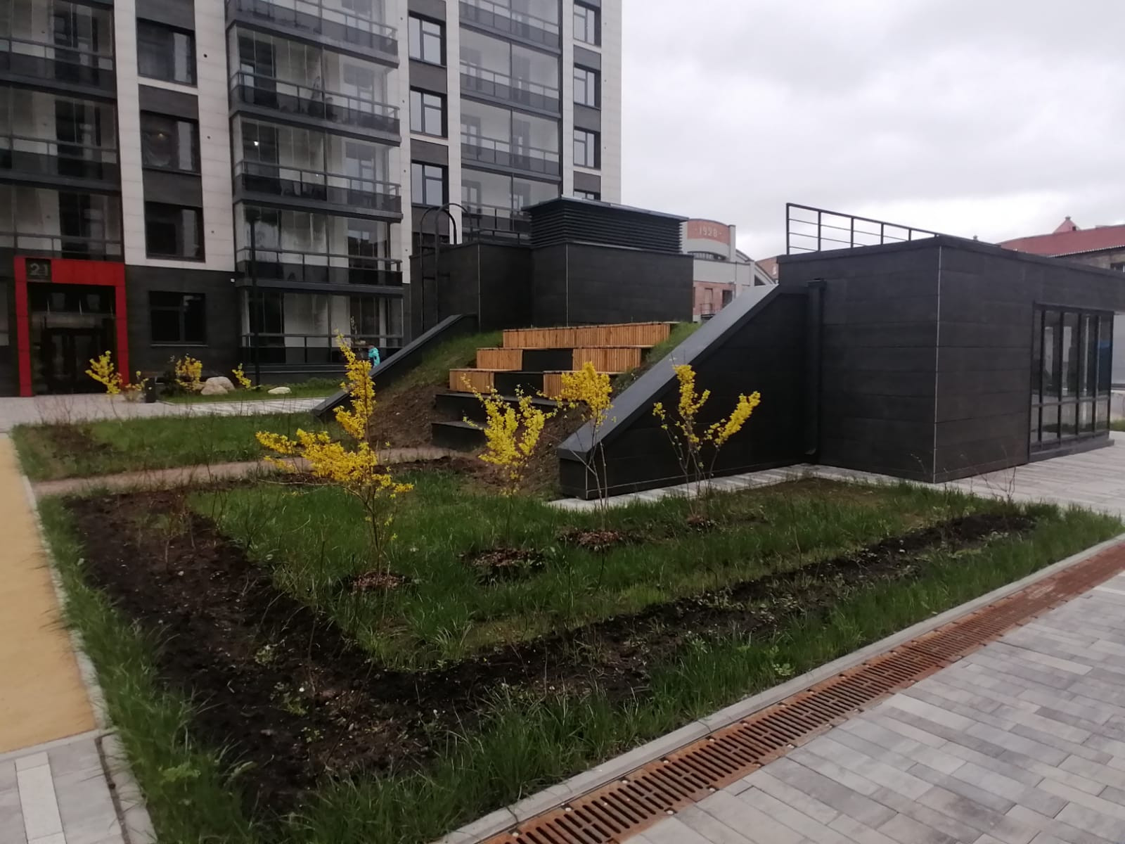 Дворы закрыты от посторонних, внутри – уютные зоны отдыха и игровые площадки под навесами.