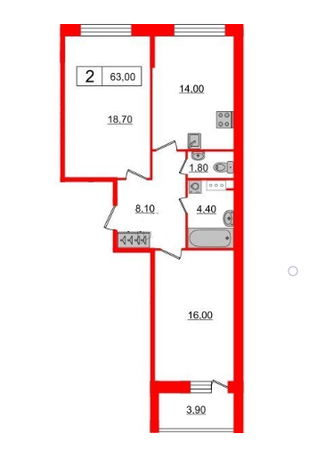 Общая площадь 63 м2