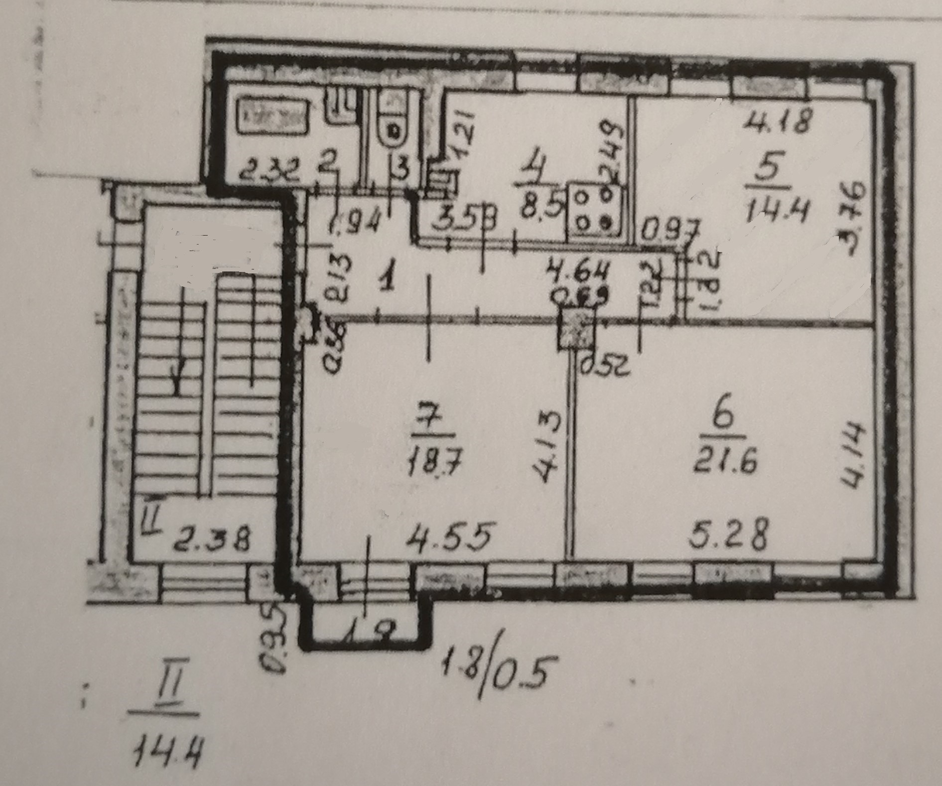 Жилая площадь 54.7 м2
