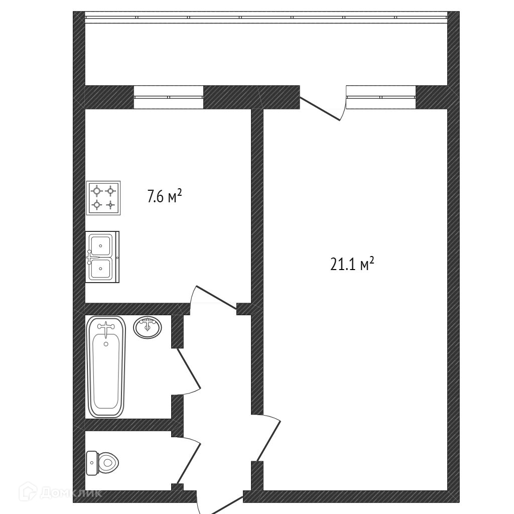 Жилая площадь 21.1 м2