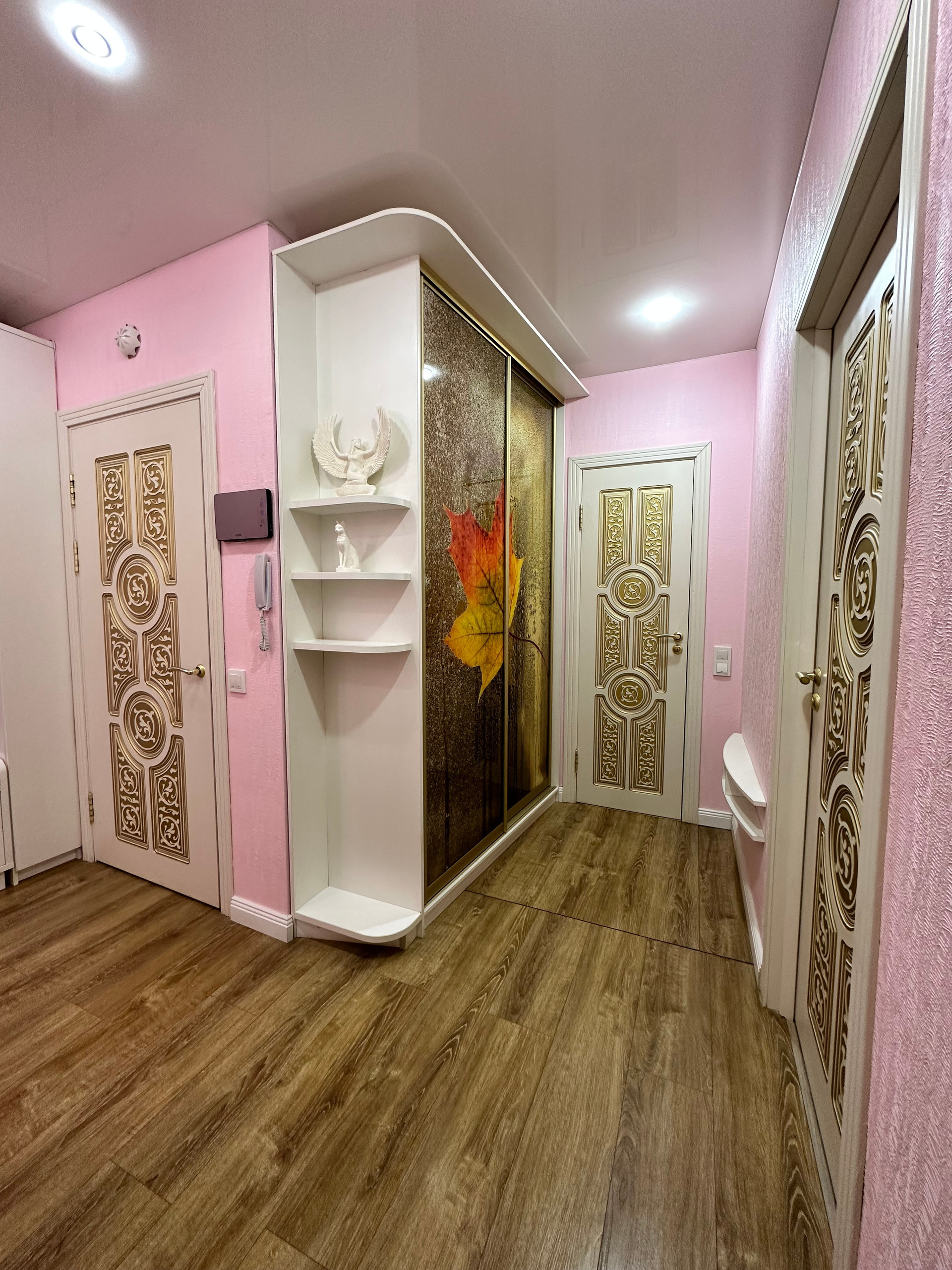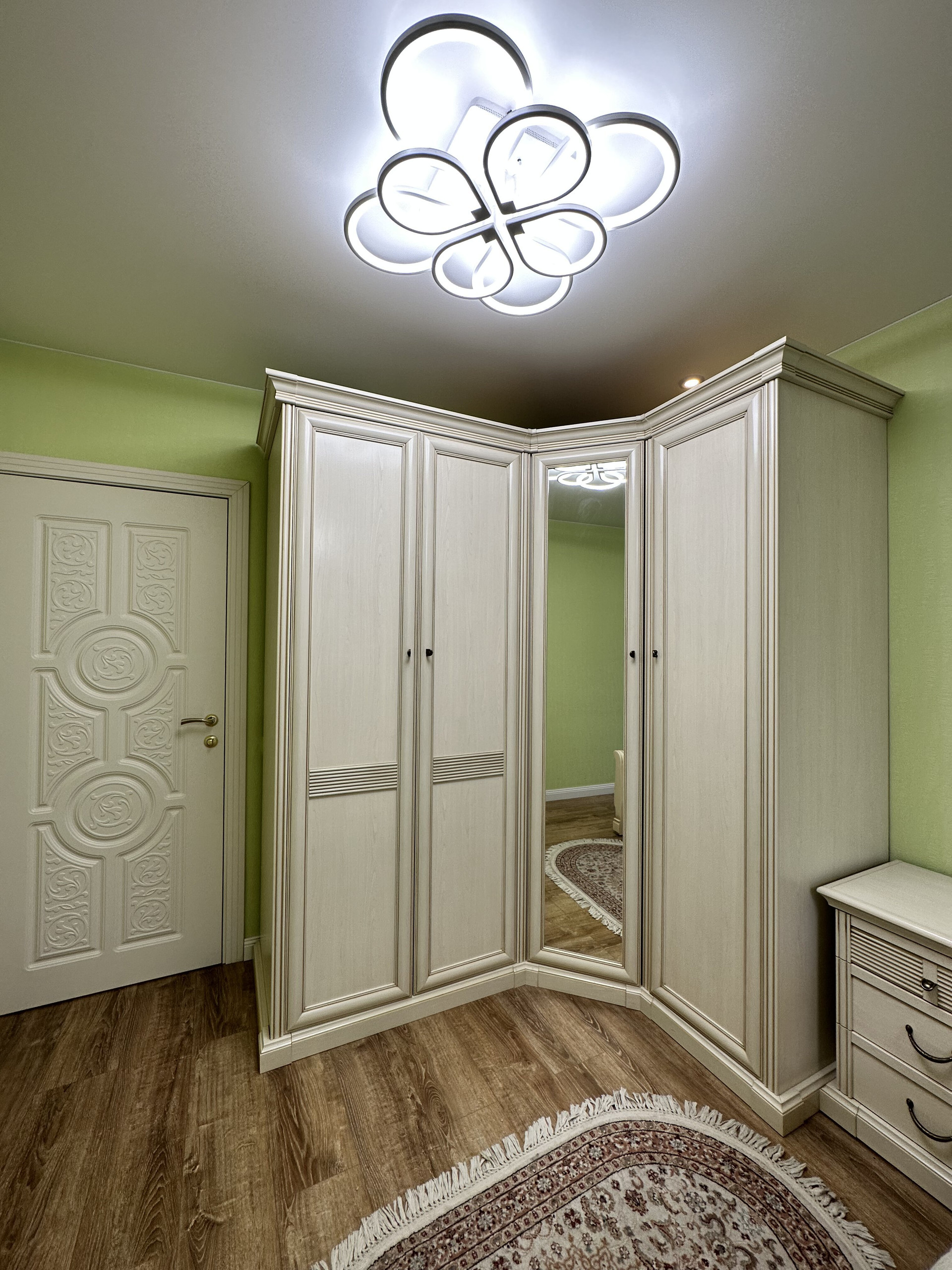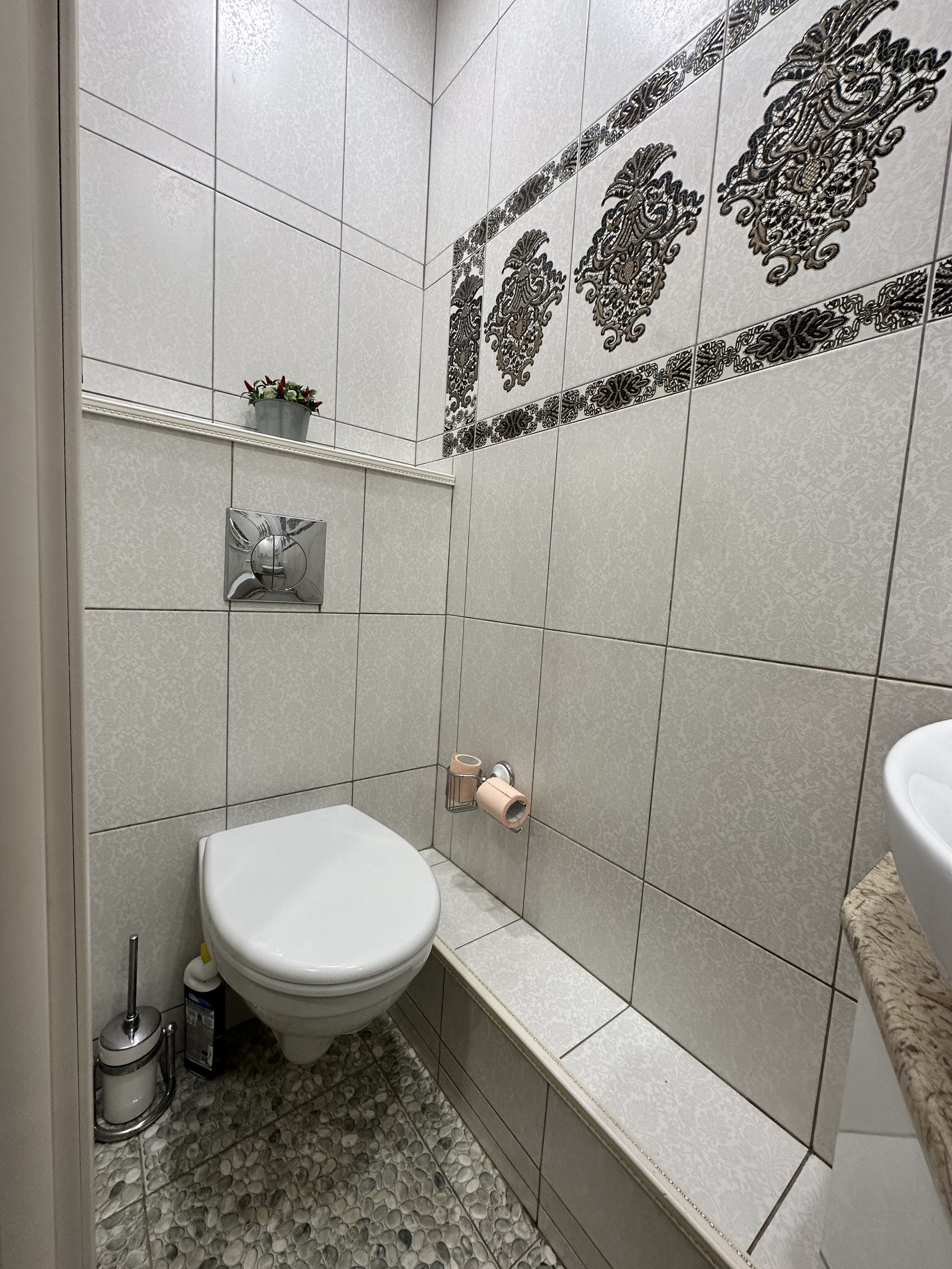 В квартире два санузла: большой (4,4 кв.м) и малый (1,6 кв.м). Отделка большого санузла с ванной выполнена совсем недавно, в 2022 году. Зеркала, шкафчики – всё остаётся в том виде, как на фото. Новым собственникам остаётся и встроенный шкаф-купе в прихожей.
