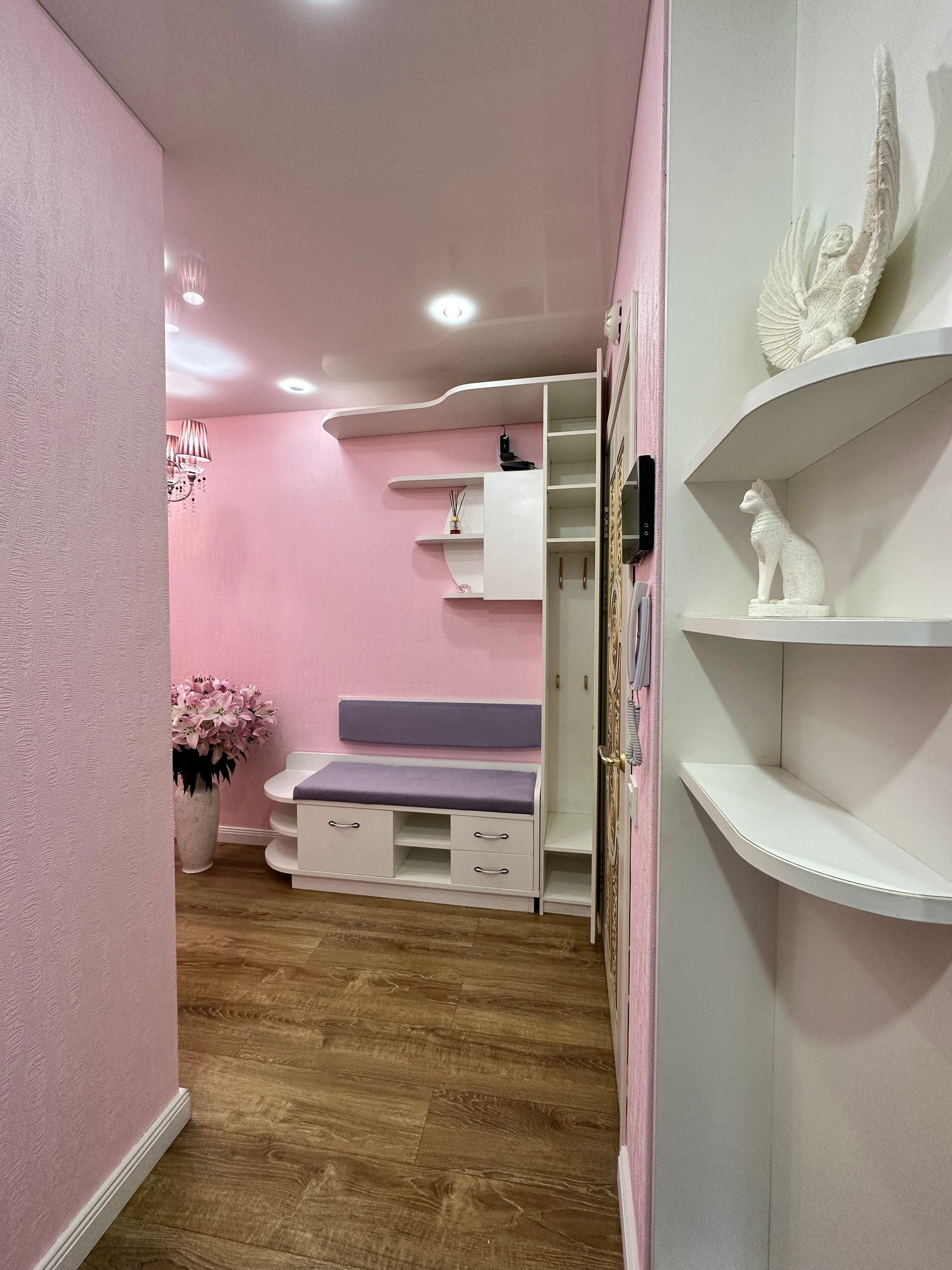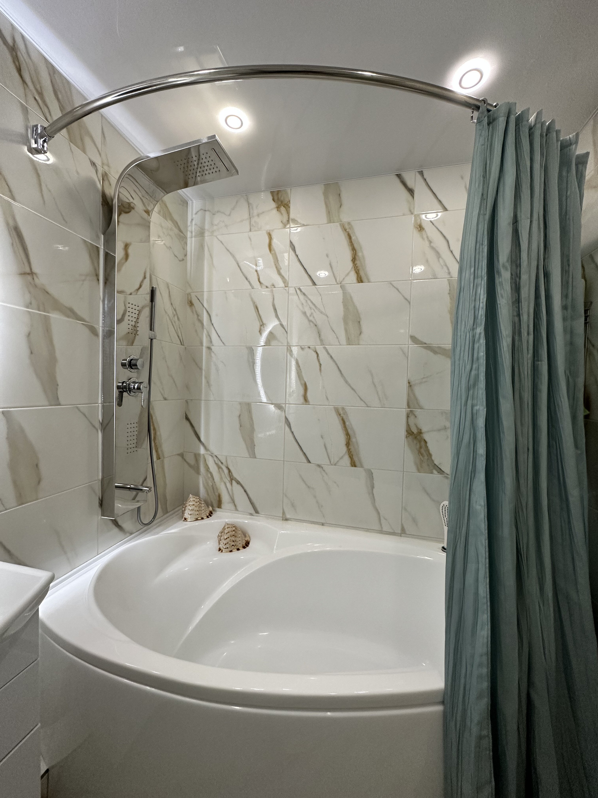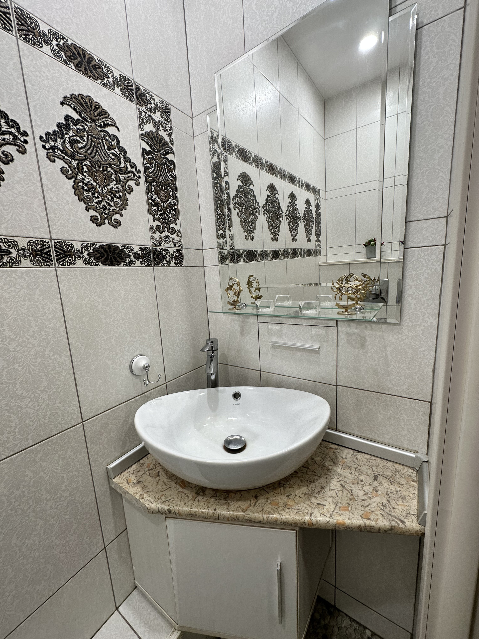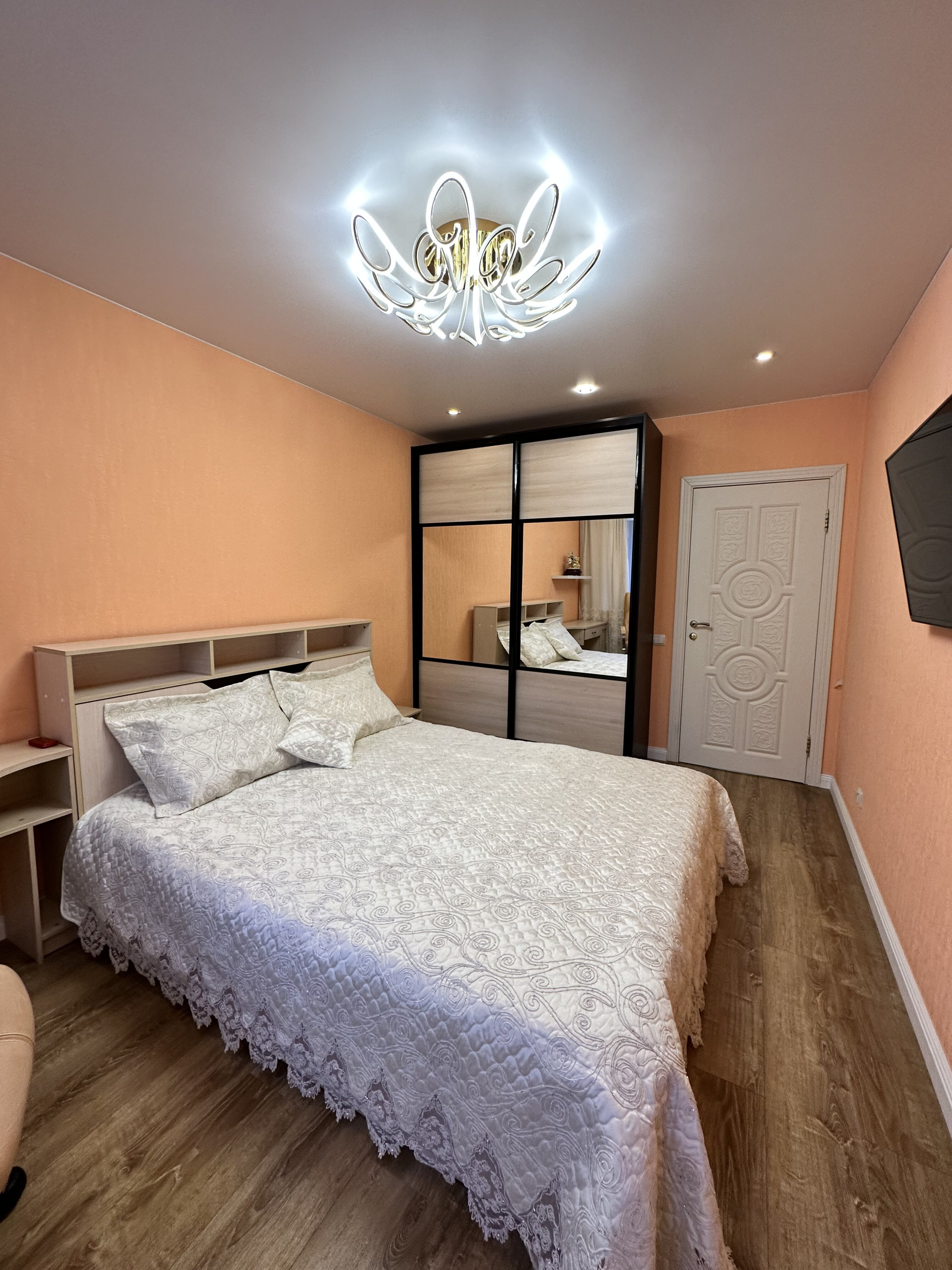 В квартире два санузла: большой (4,4 кв.м) и малый (1,6 кв.м). Отделка большого санузла с ванной выполнена совсем недавно, в 2022 году. Зеркала, шкафчики – всё остаётся в том виде, как на фото. Новым собственникам остаётся и встроенный шкаф-купе в прихожей.