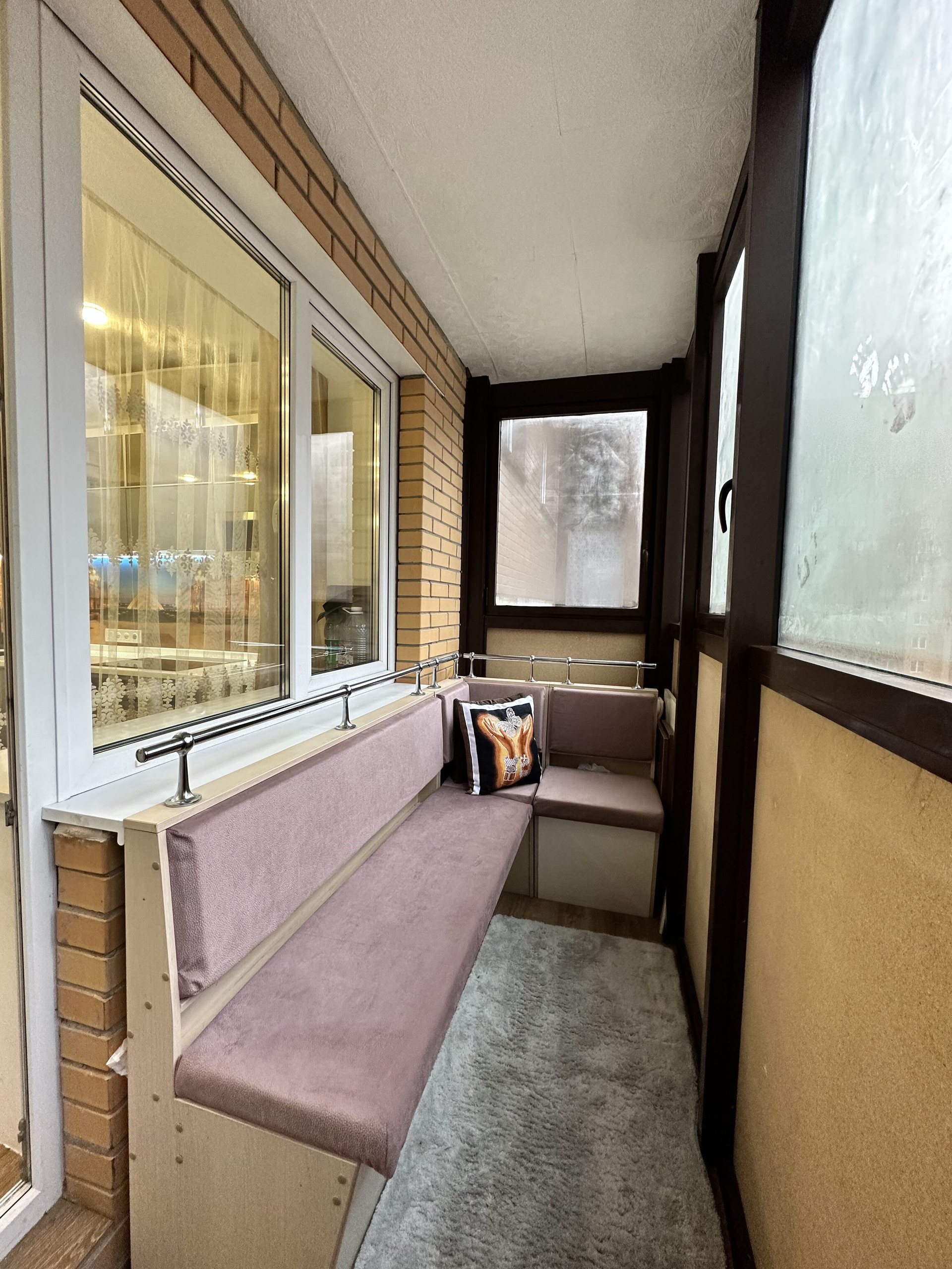 Планировка двухсторонняя, поэтому окна выходят в противоположные стороны, но все – во двор. Кстати, внутренний двор – закрыт от посторонних ограждением и калиткой с домофоном, благоустроен газонами, детскими площадками и охраняется круглосуточно!