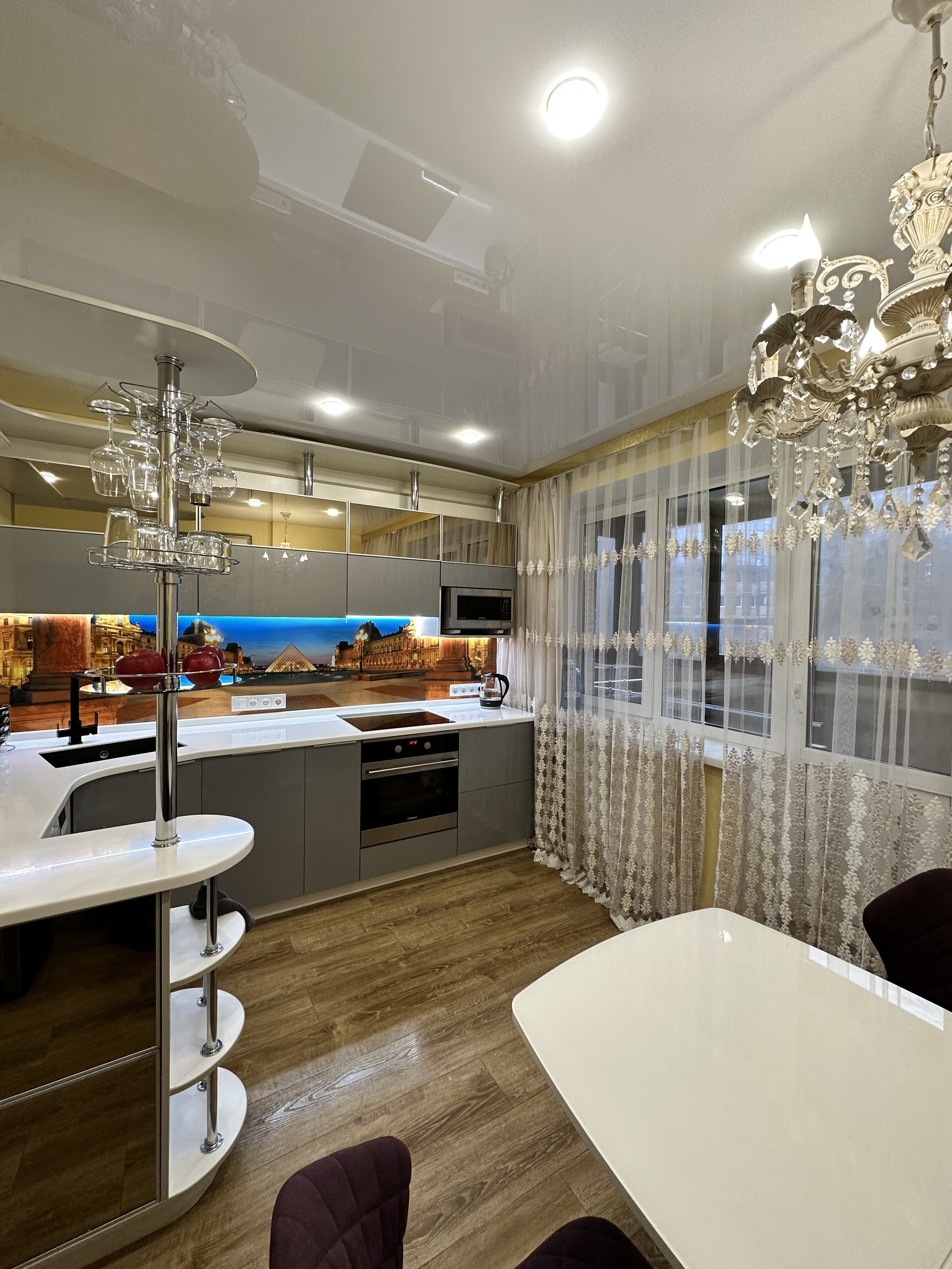 Кухня 12,8 кв.м – квадратная, с выходом на балкон, полностью укомплектована встроенной мебелью и бытовой техникой – порадует новых хозяев в том числе интересными световыми решениями! Мебель, стиральная и посудомоечная машины, холодильник…а также обустройство балкона – остаётся новым владельцам.