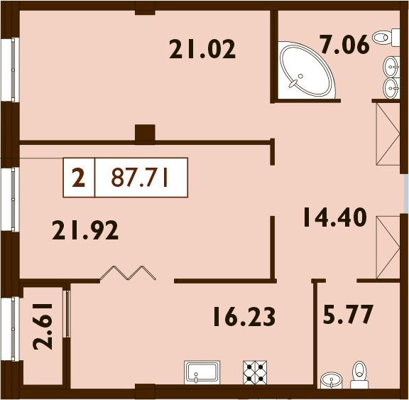 Общая площадь 87.71 м2