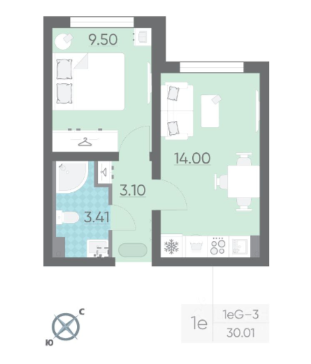 Общая площадь 30.01 м2