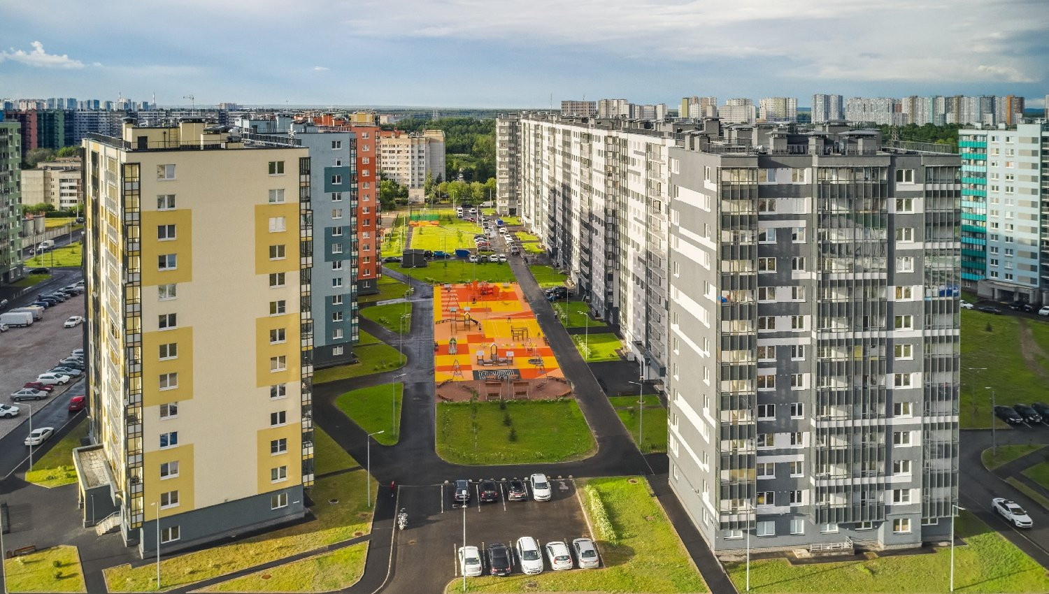 Территория первой очереди благоустроена и озеленена. Дворы с игровыми и спортивными площадками, прогулочными аллеями и лаунжами располагают к отдыху. На территории комплекса силами ЛСР построен детский сад. Всего в микрорайоне два работающих дошкольных учреждения, планируется строительство школы.