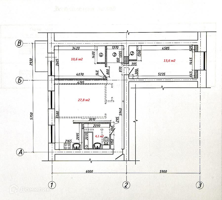 Общая площадь 59.4 м2