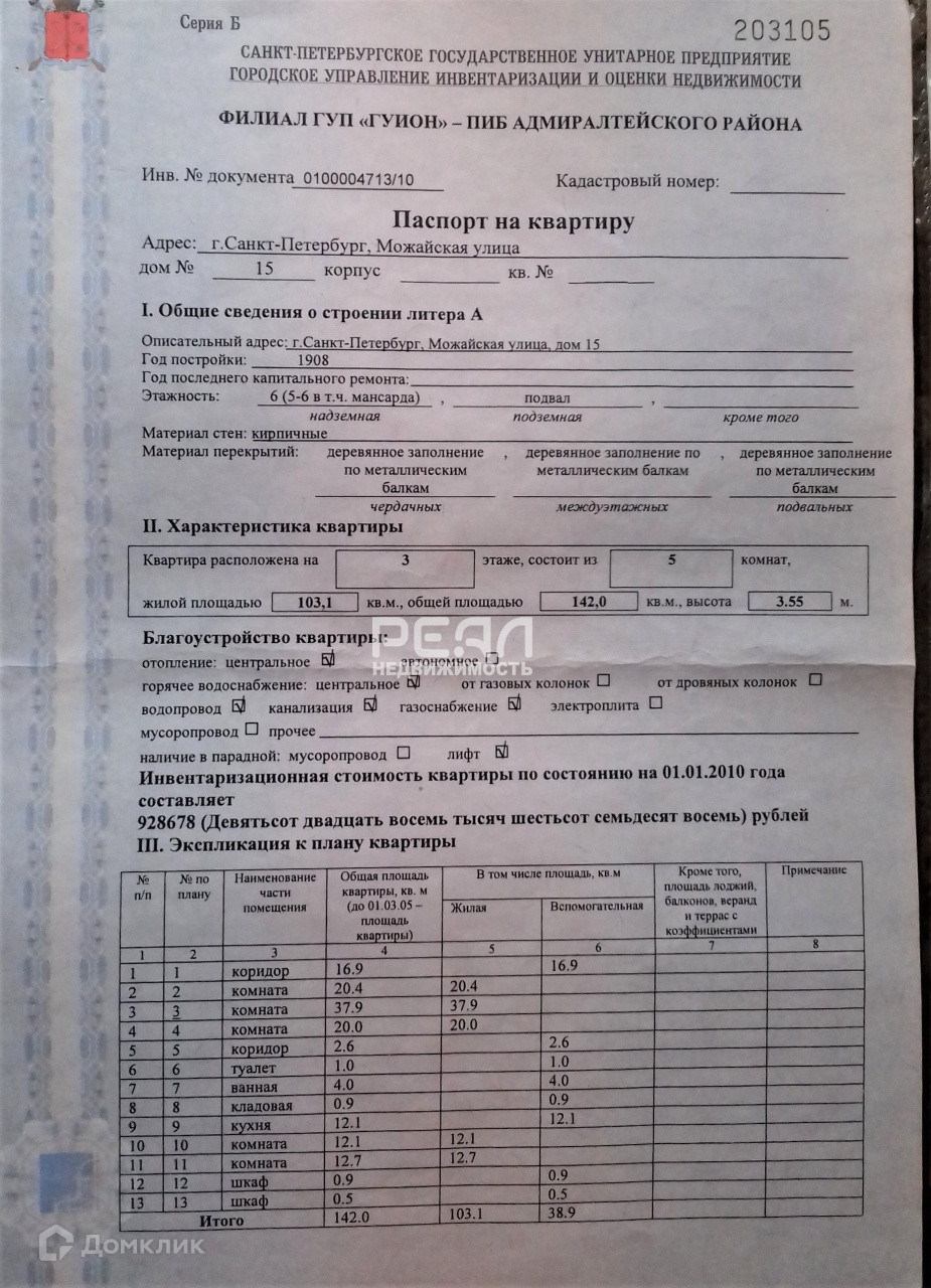 5-комнатная квартира, 142 м2, этаж 3 / 6, на продажу в Санкт-Петербурге, Можайская улица, 15