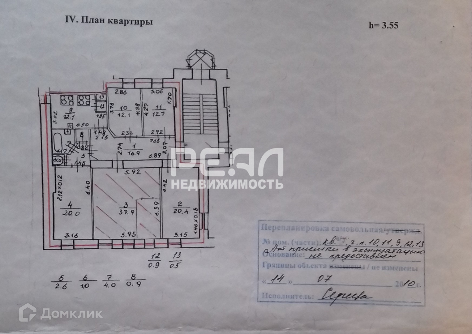 Высота потолков 3.55 м