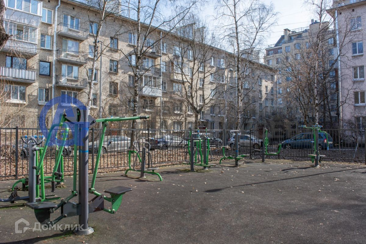 Дом. Кирпичный дом 1961 года постройки. Санузел раздельный. Частичный ремонт дома в 2011 году (трубы, стояки, фасад дома, крыша, лестницы, стеклопакеты в МОПах и пр.) -всё на фото. Дом расположен рядом с элитным домом на Малом проспекте 63/14 с общей придомовой территорией. Общая площадка воркаут (фото). Элегантное архитектурное решение фасада с эркерами (фото). Стеклопакеты расположены по всему фасаду (фото) —  это значит в доме однородная социальная среда. Домофон. Запах в парадной отсутствует, что несвойственно домам этого типа.