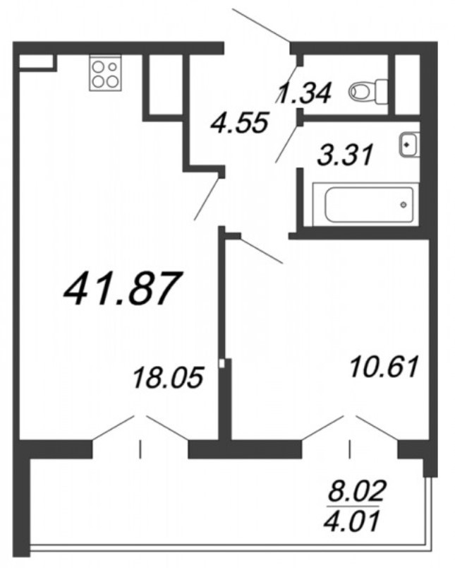 Общая площадь 41.9 м2