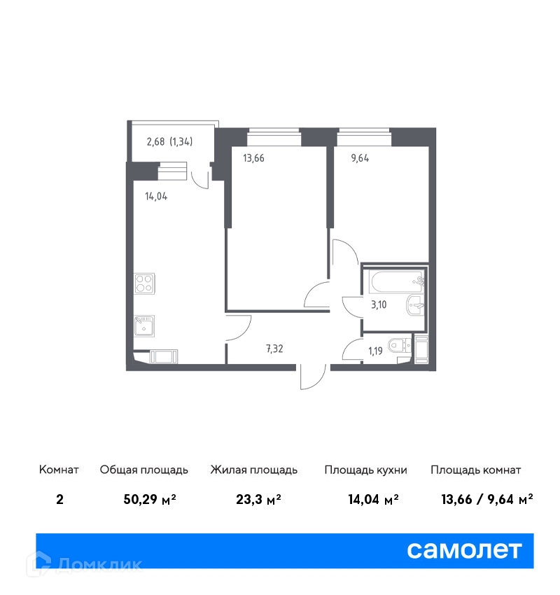 Общая площадь 50.29 м2