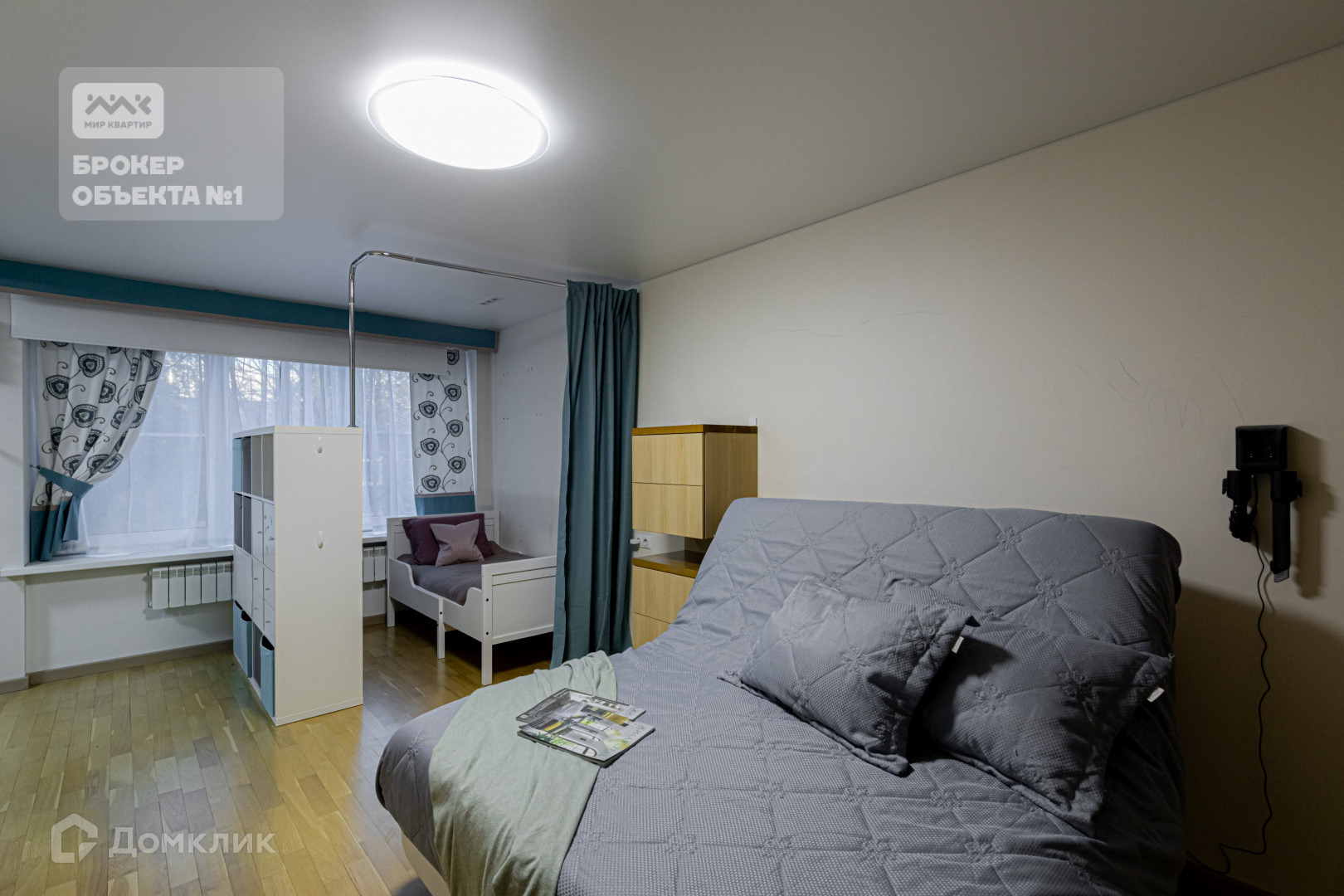 Квартира общей площадью 36 м.кв., состоит из комнаты, которая разделена на детскую зону и спальню, кухня 6,0 м.. Расположена на 3-ем этаже 12-ти этажного дома.