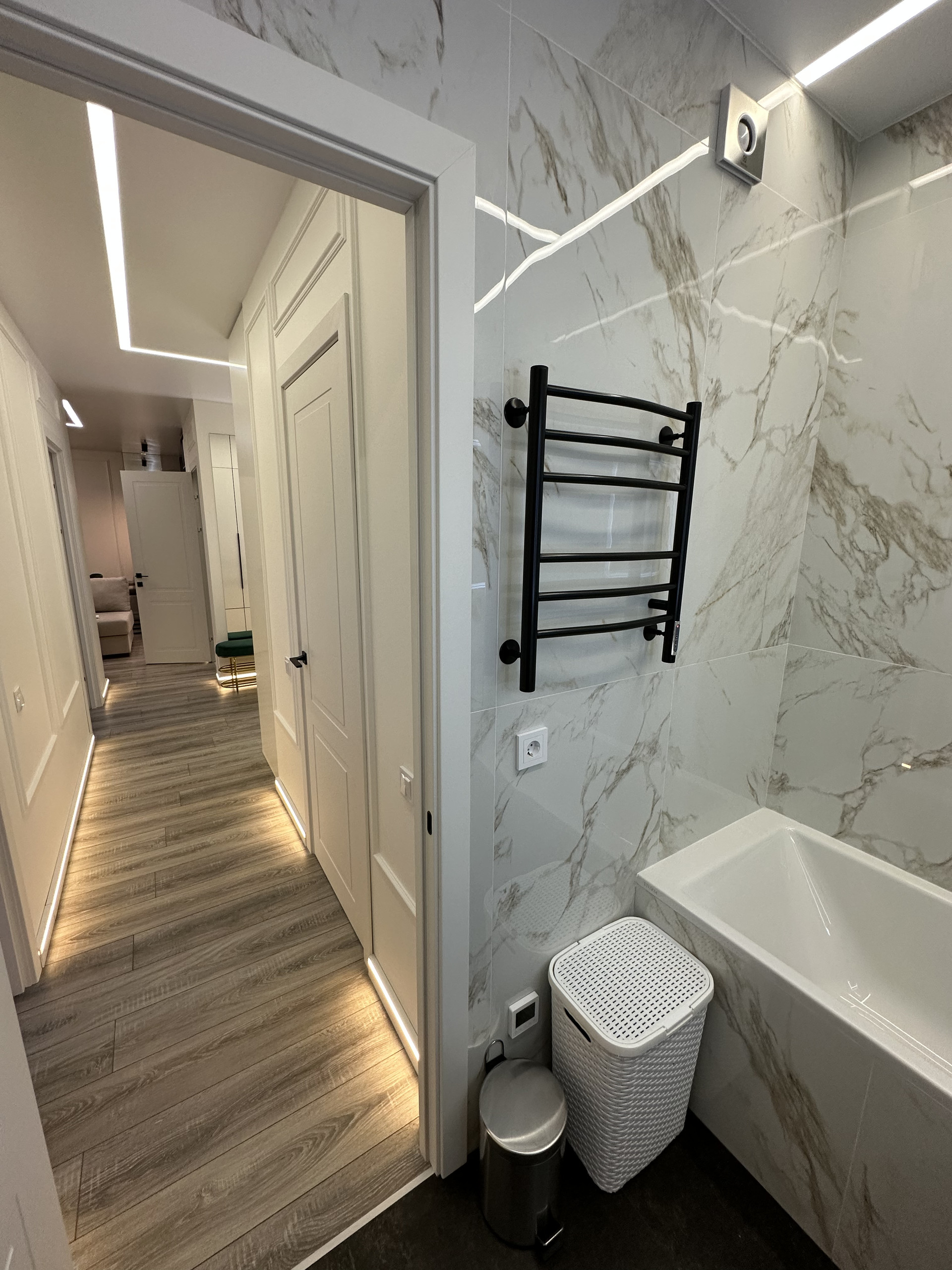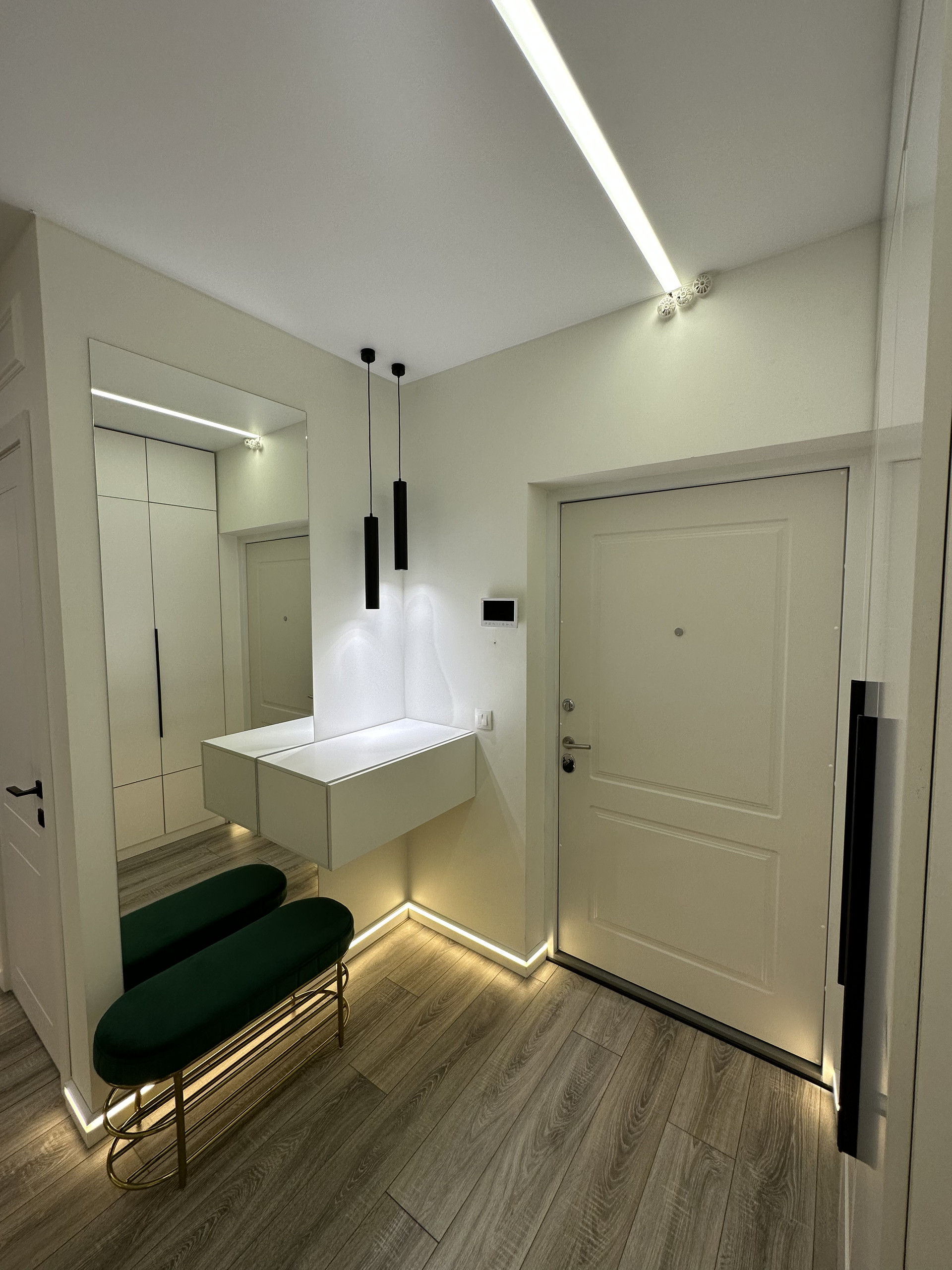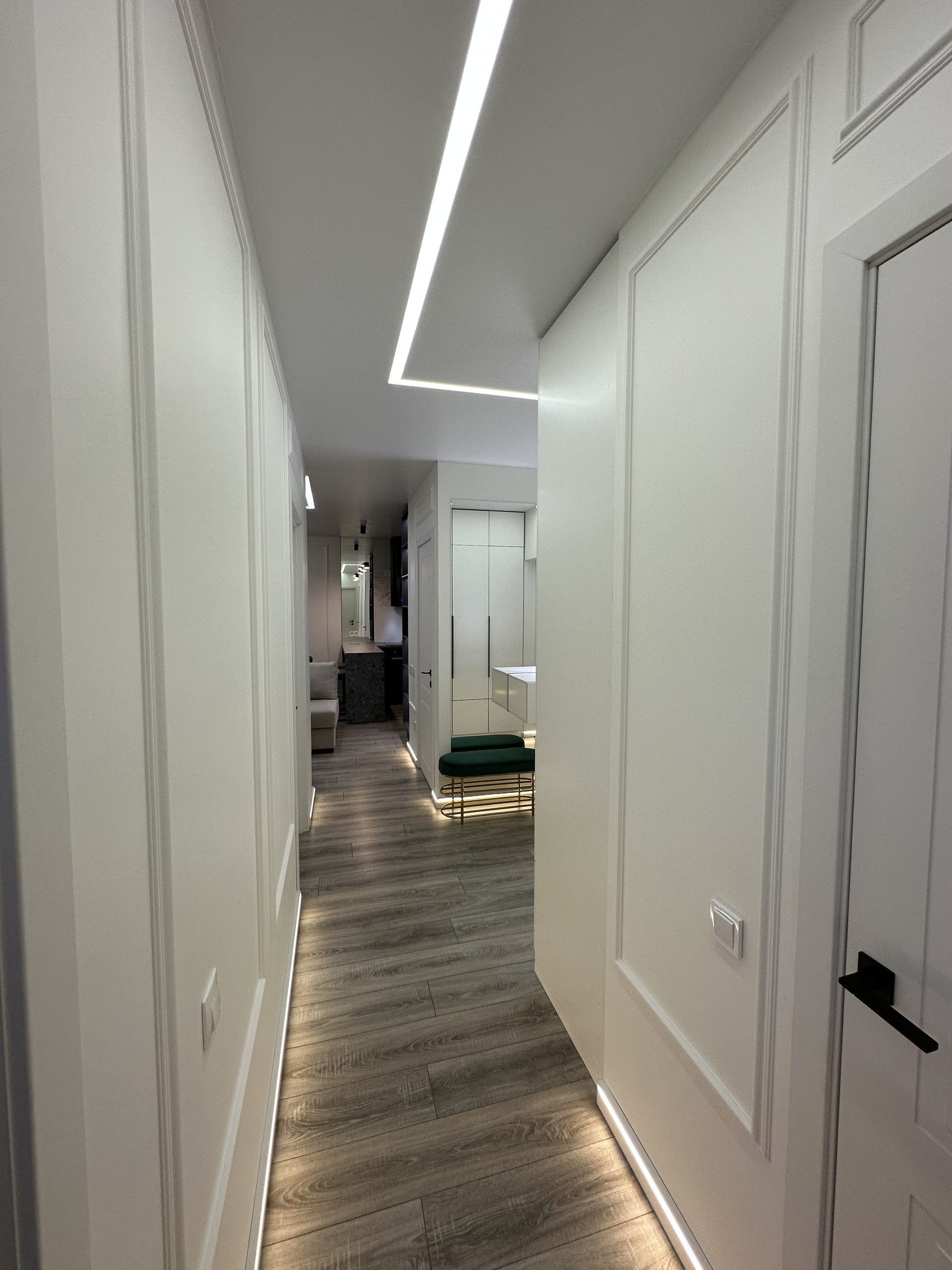 В прихожей и коридоре также регулируемое зональное освещение.