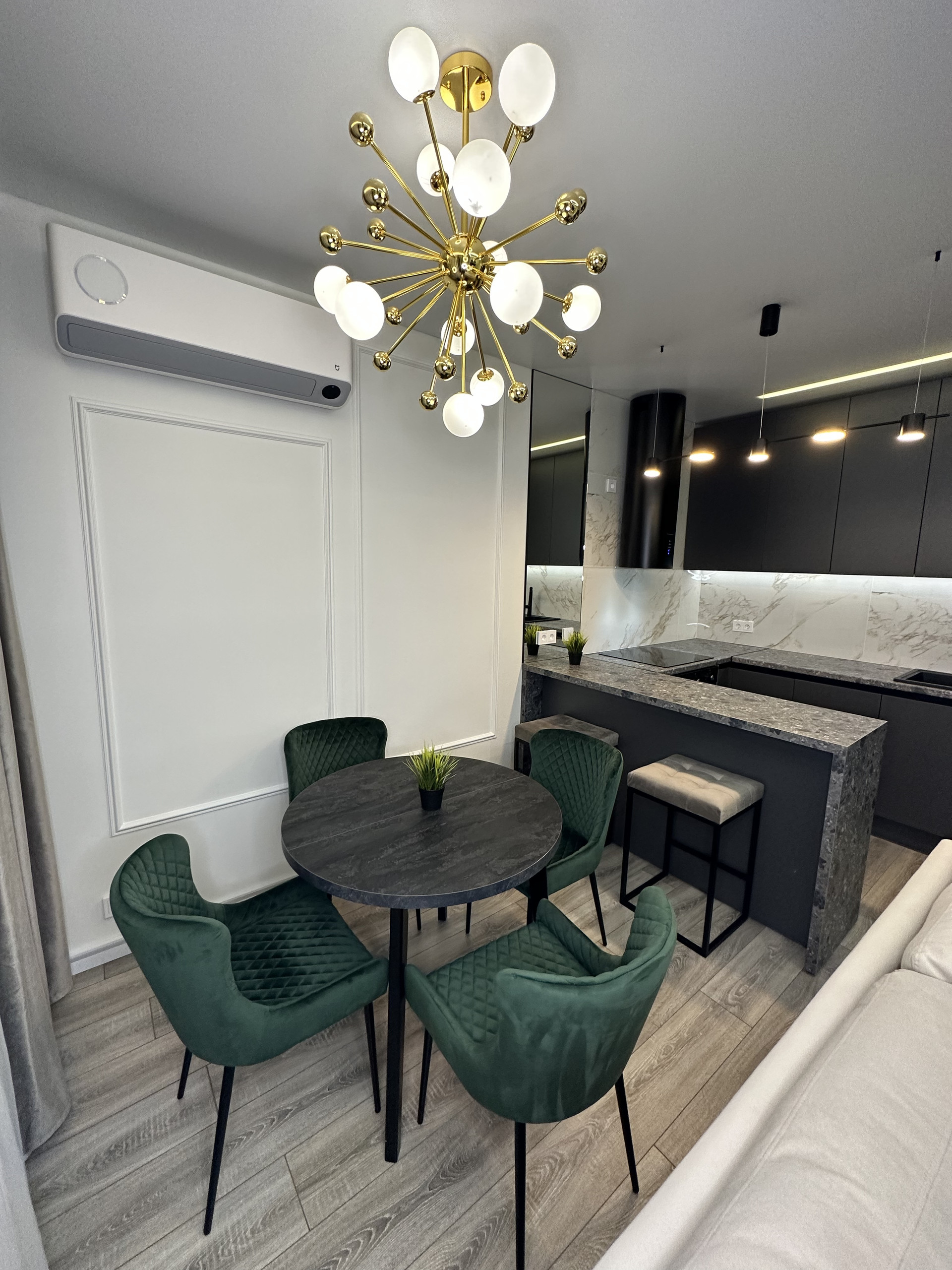 обеденная зона с раскладным круглым столом и 4 стульями;