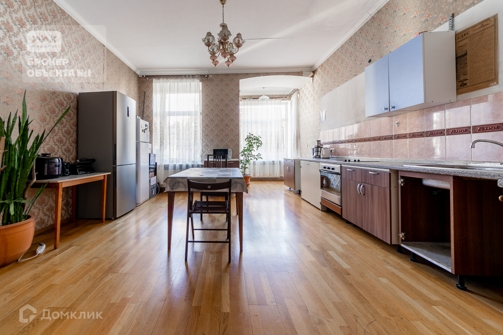 Общий метраж квартиры 157 метров, просторная кухня и 4 отдельных комнаты, помещение ванной комнаты с окном.  Всего одна капитальная стена позволяет поделить пространство внутри квартиры на наш вкус при необходимости. 17 окон квартиры,  9 из них на воду и при этом ни одного окна во двор! Квартира очень светлая, умеренно солнечная.  Три красивых больших эркера украшают объект.