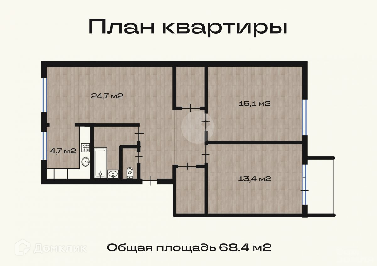 Общая площадь 68.4 м2
