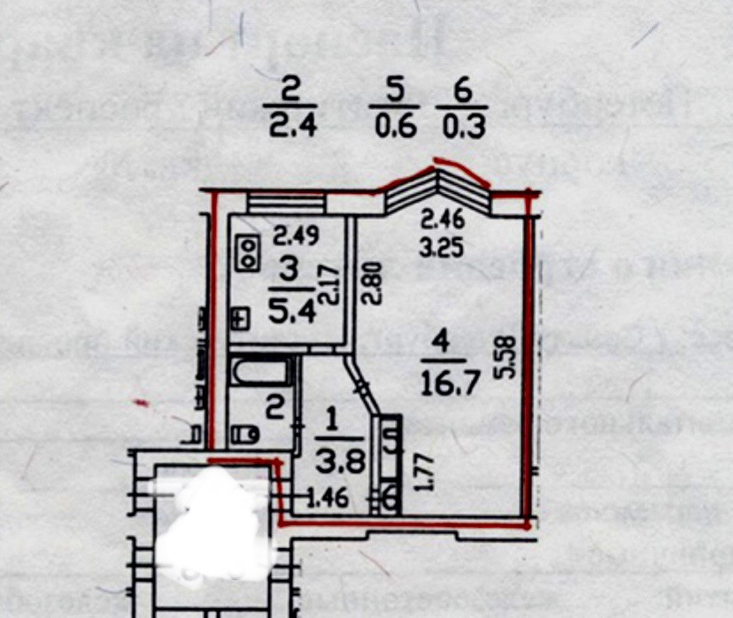 Площадь кухни 5.4 м2