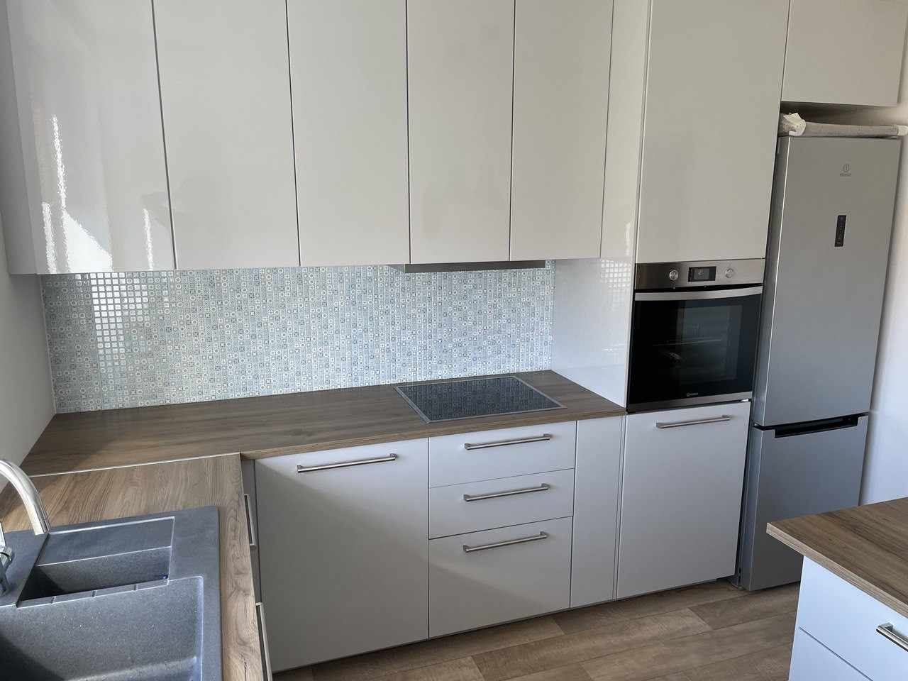 Полностью оборудованная вместительная качественная кухня. Холодильник, Духовой шкаф, электрическая плита на 4 конфорки, вытяжка. Мойка гранитная с двумя отделениями. В ванной комнате стиральная машина c инвертором Bosh, сушилка, акриловая ванна Roca.