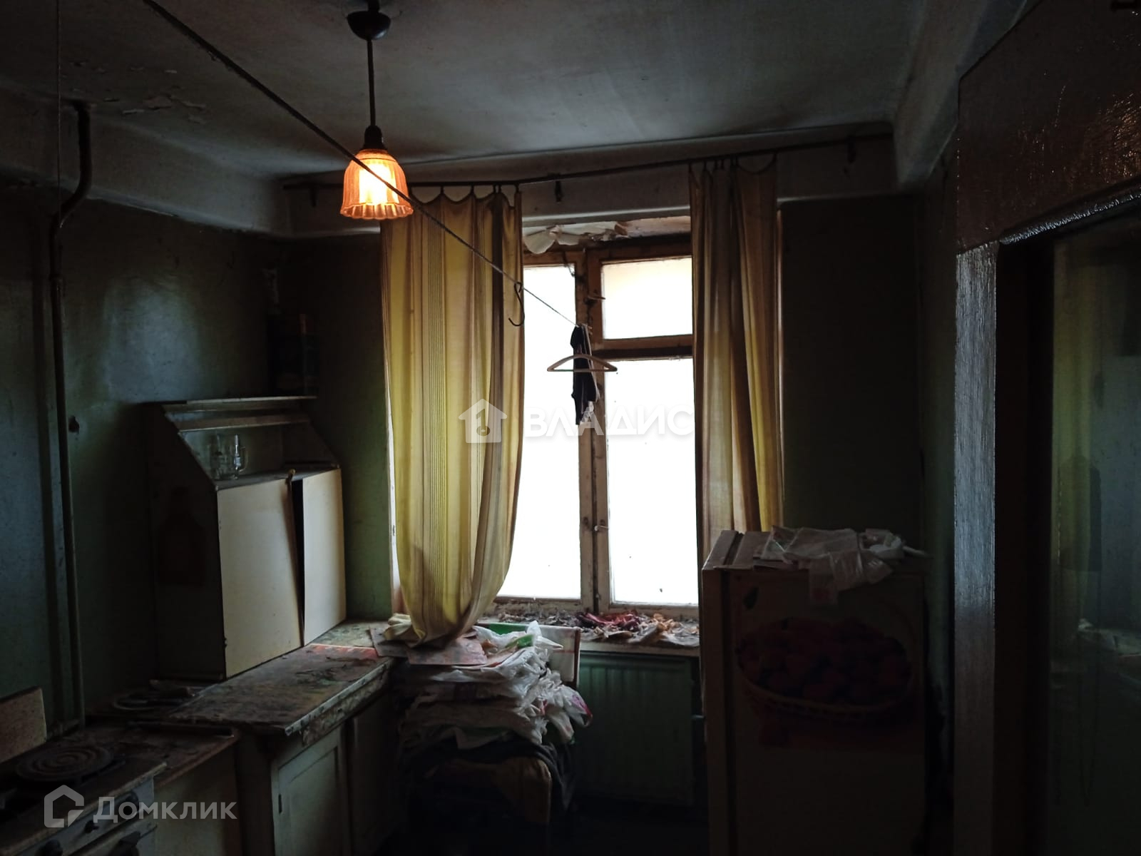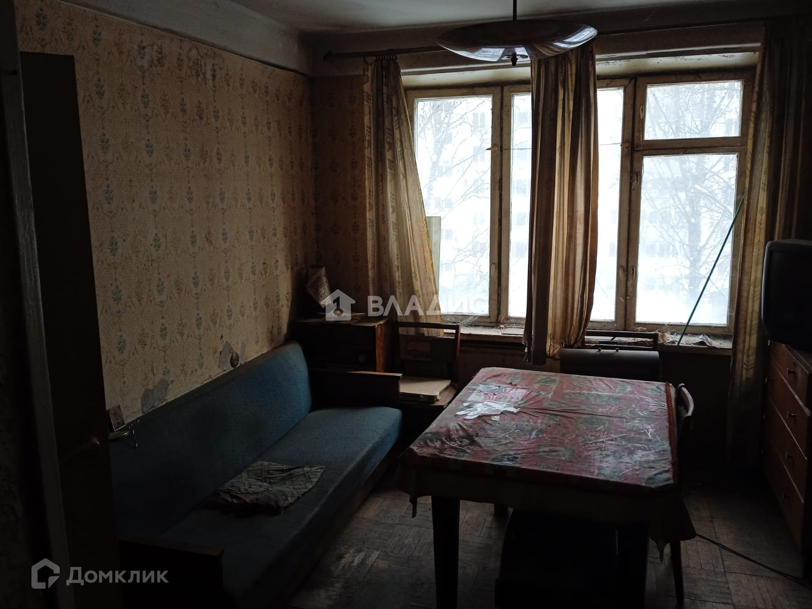 Окна выходят во двор (в комнате стоят большие окна, света очень много). Высота потолков 2,5 метра, в квартире проведен газ, в доме установлен новый лифт. Необходим капитальный ремонт.