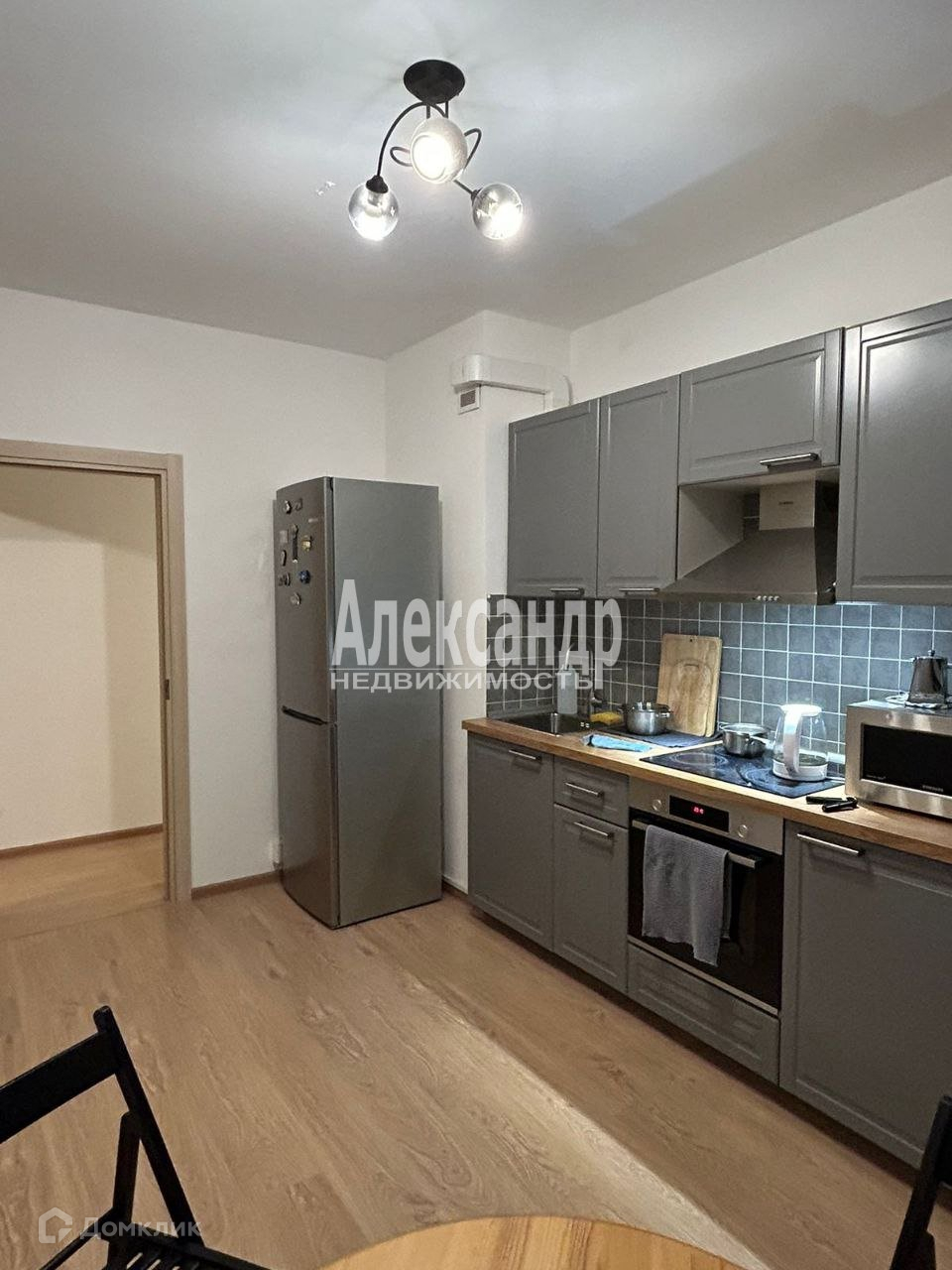 Кухня укомплектована дорогой фирменной техникой и кухонным гарнитуром, которые остаются новым владельцам.