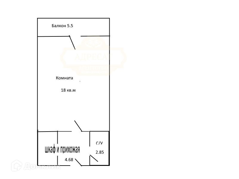 без балкона - 17,71 м2, коридор и шкаф встроенный площадь 4,68 м2.