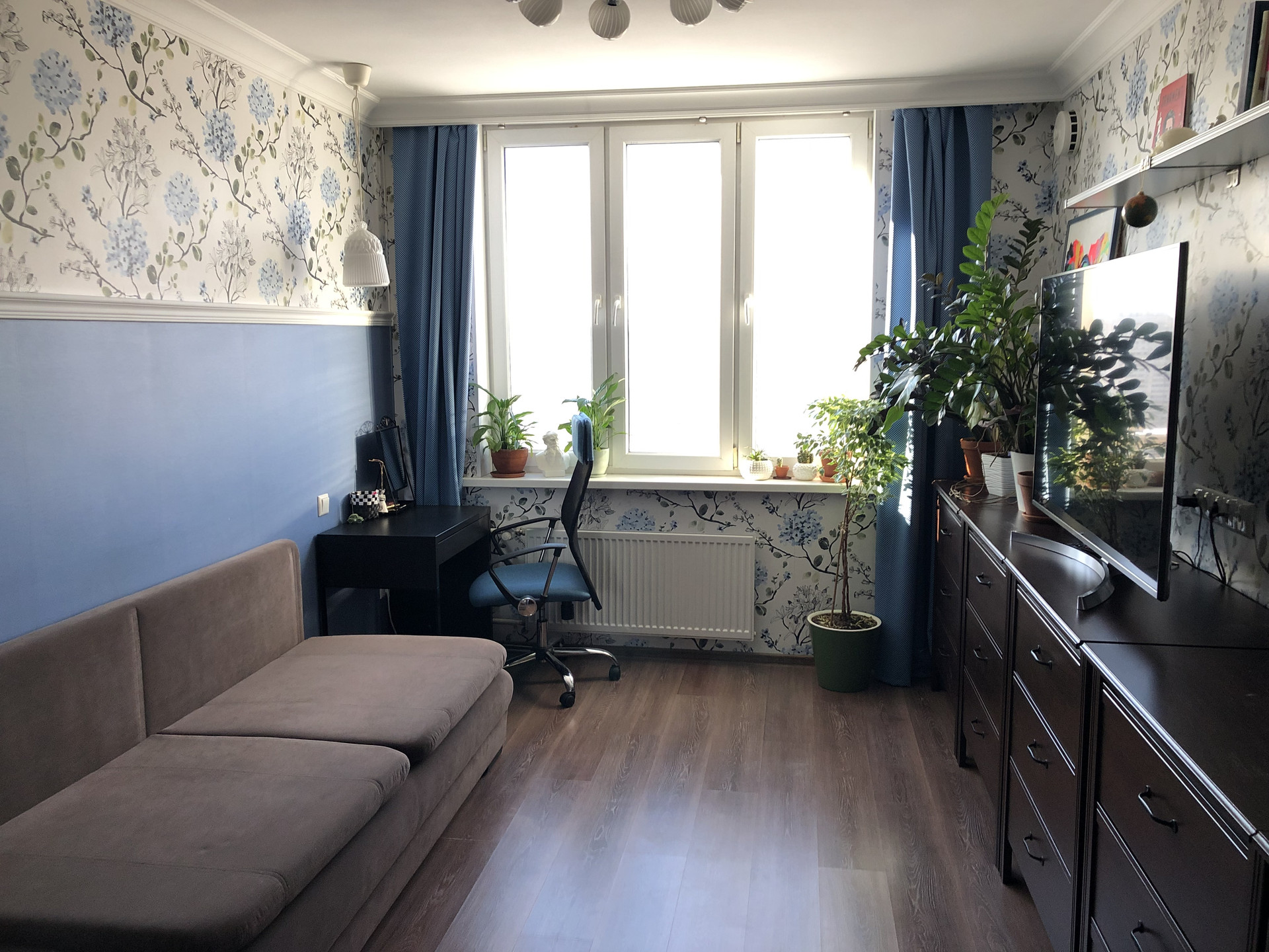 О ПЛАНИРОВКЕ И РЕМОНТЕ: практичный, удобный дизайн, с продуманной меблировкой: вместительная прихожая, просторная кухня и довольно большая комната, совмещенный с/у. В прихожей - гардеробная с зеркальными дверями, в кухне - мебель Икея со встроенной техникой, включая холодильник и посудомойку (входит в стоимость!), Обустроено место под стиральную машину, где она и установлена (см.фото) и хозяйственные шкафы между кухней и санузлом. В целом в квартире очень продуманное хранение, разводка розеток и освещение разного уровня, что позволяет комфортно существовать при разном образе жизни членов семьи, работать и учиться удаленно.