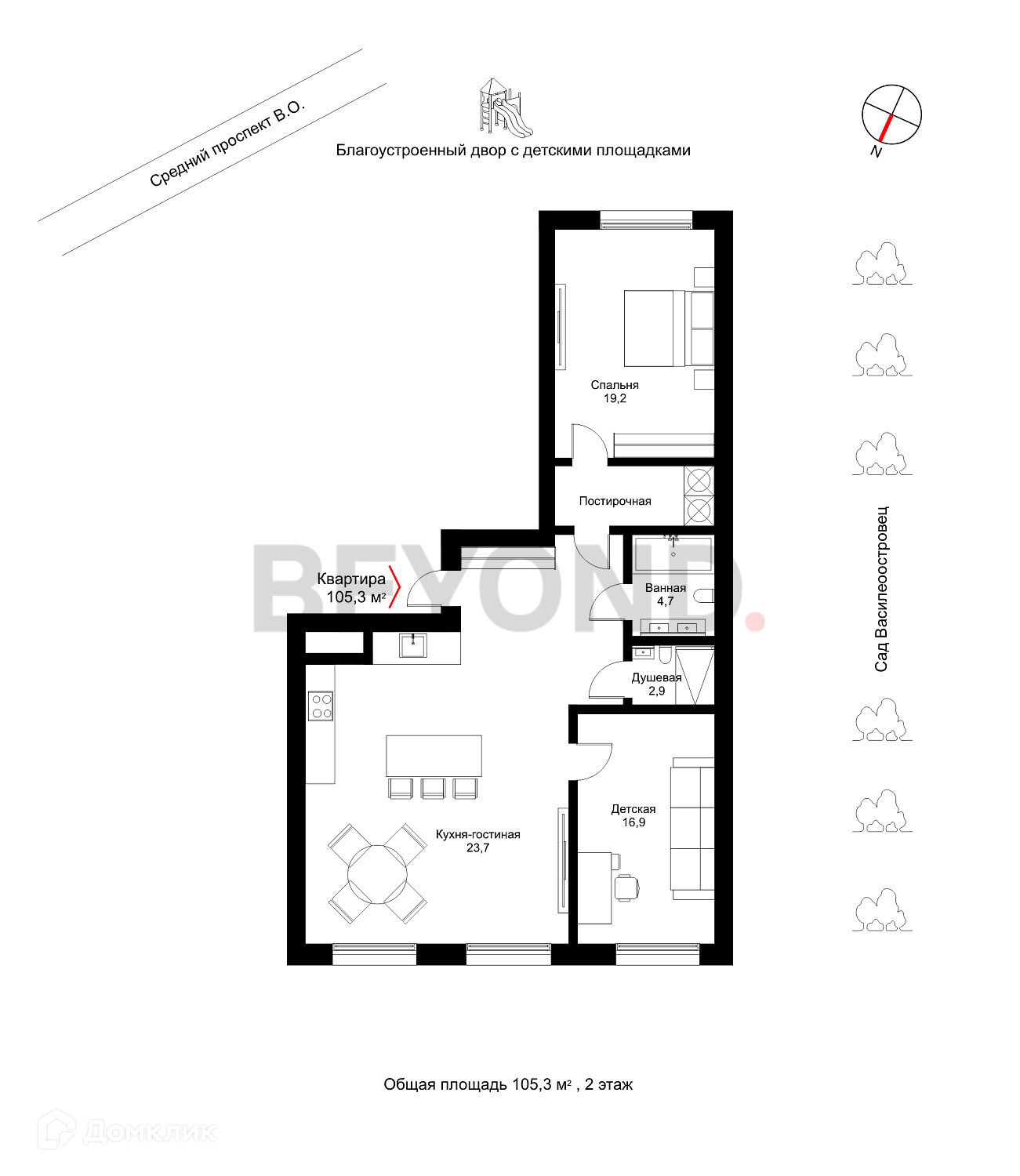 Общая площадь 105.3 м2