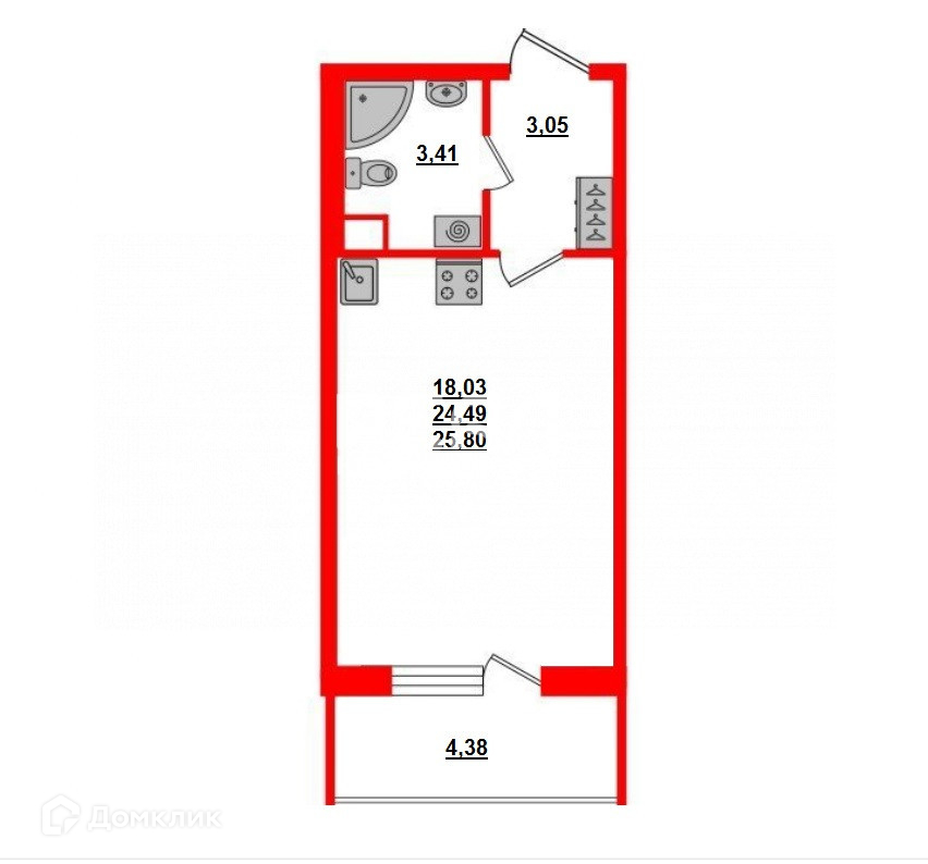 Общая площадь 25.8 м2