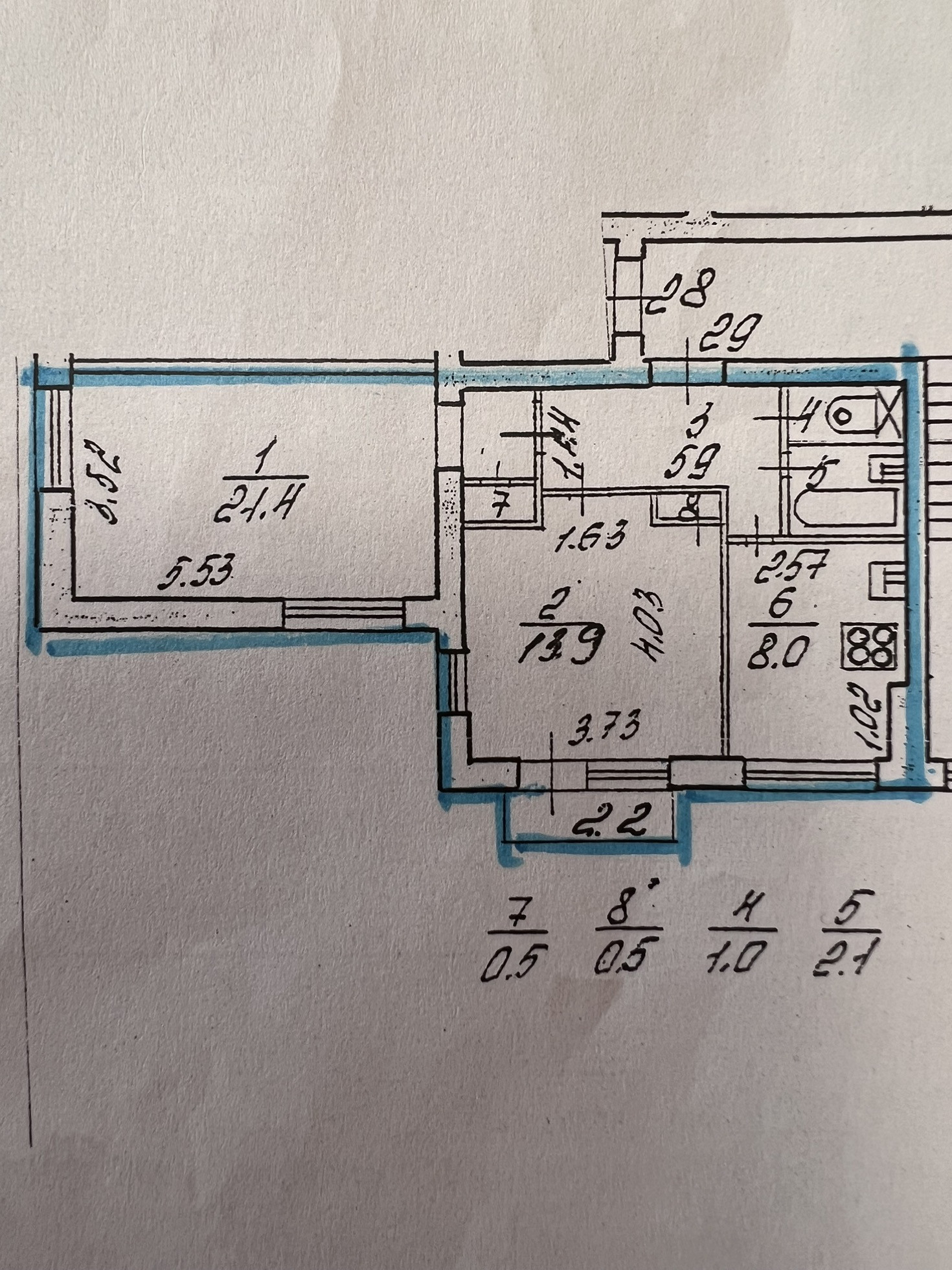 Жилая площадь 35.3 м2
