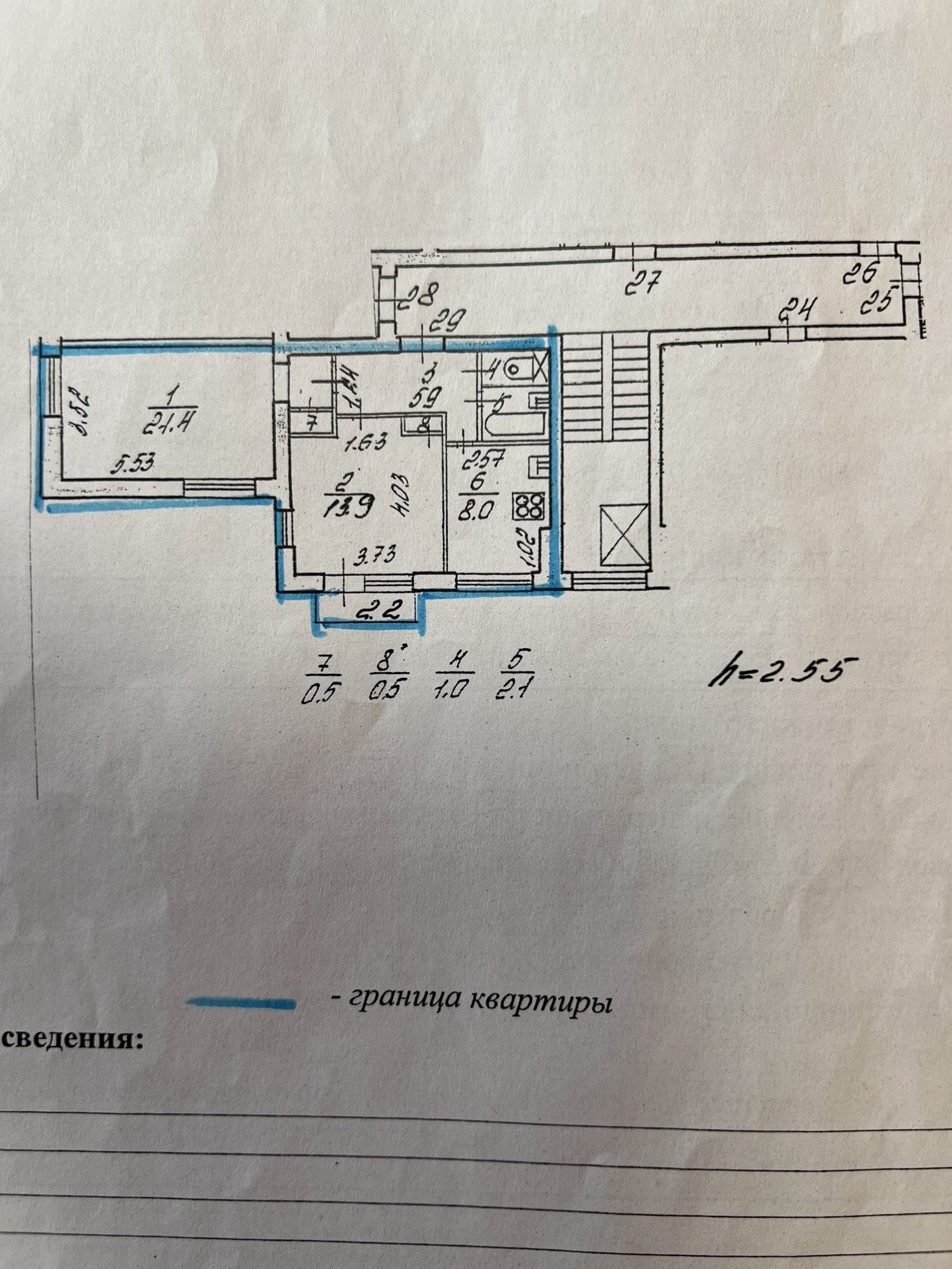 Высота потолков 2.55 м