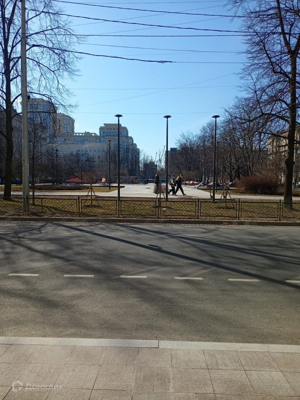 Перед комплексом разбит живописный сквер с зонами отдыха и деревьями-это экранирует дом от Московского проспекта.