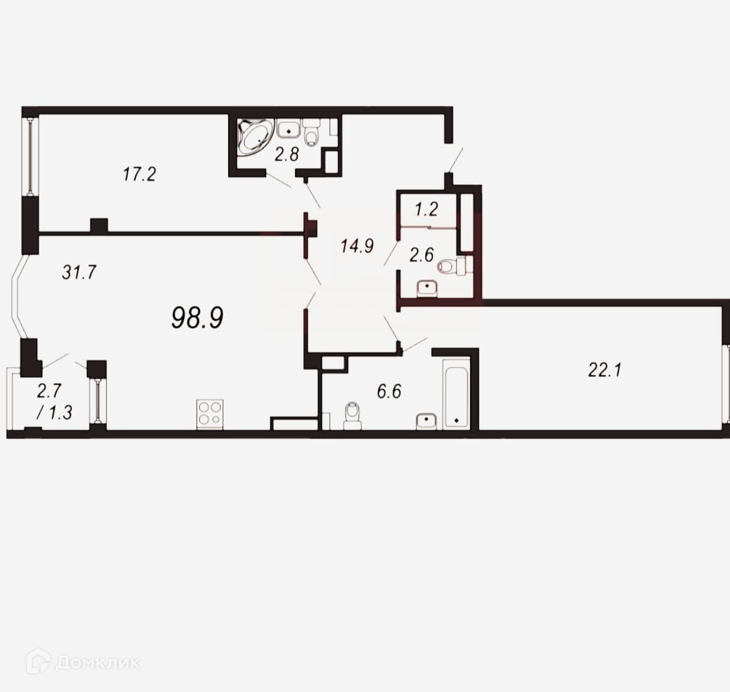 2-комнатная квартира, 100.6 м2, этаж 6 / 7, на продажу в Санкт-Петербурге, улица Гастелло, 9