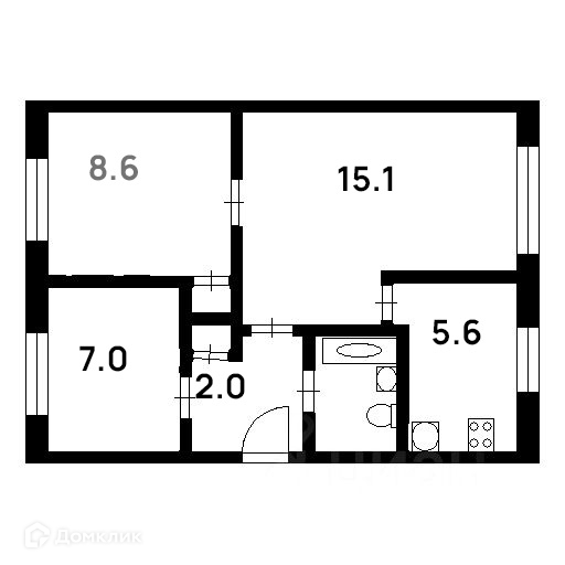 Жилая площадь 30.7 м2