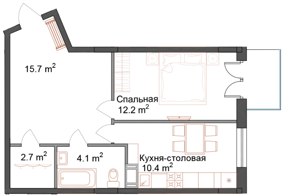 Жилая площадь 12.2 м2