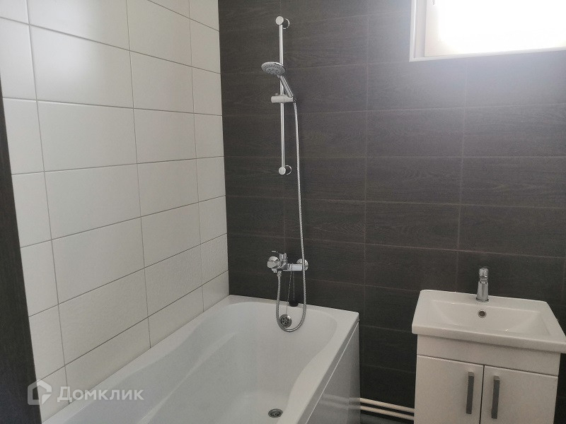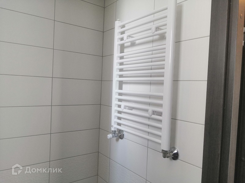 В санузле кафельная плитка и система `