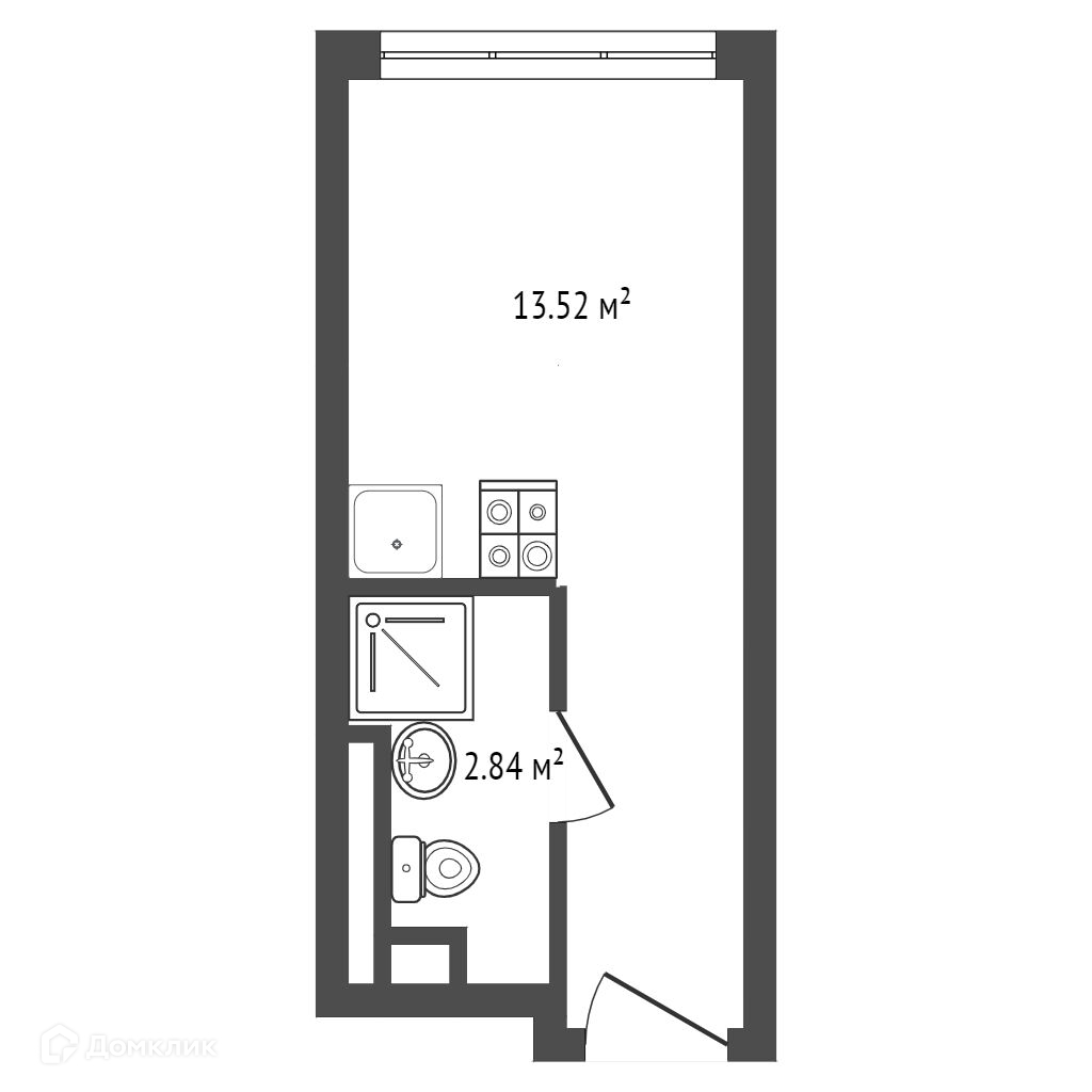 Жилая площадь 13.52 м2