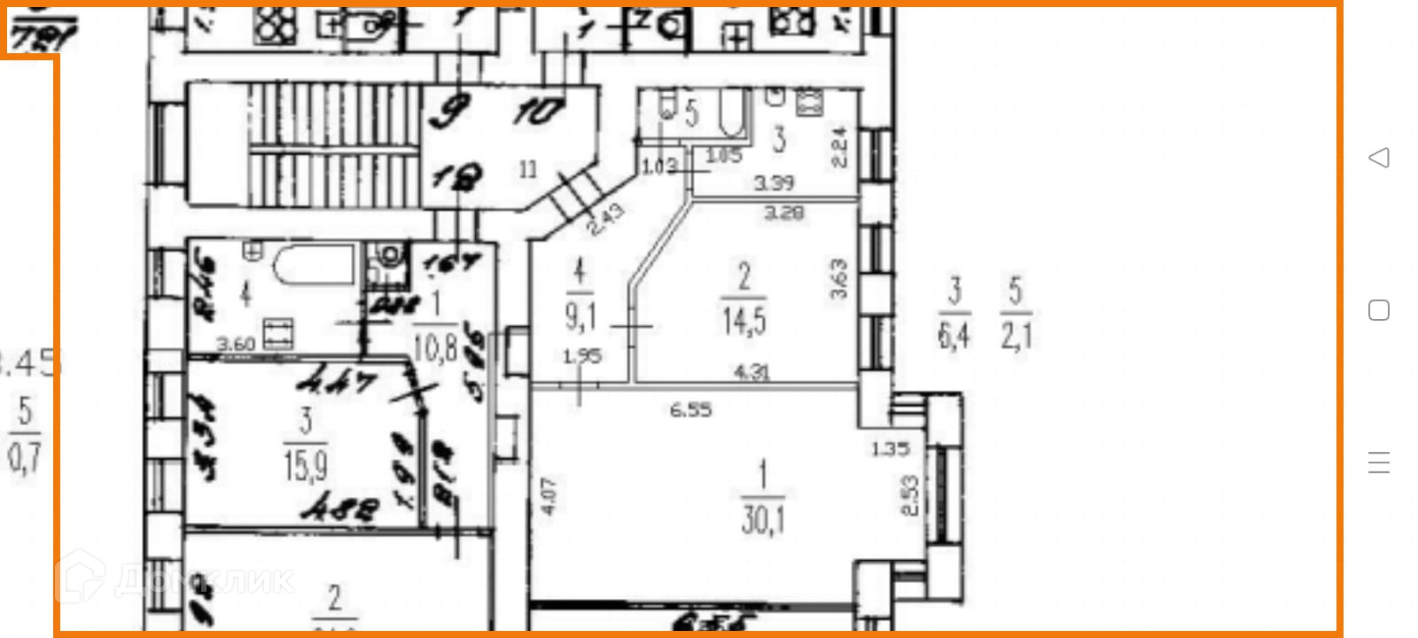 Две комнаты гостинная 30,1 кв. м с эркером и 3-мя окнами, спальня 14,5 м с двумя окнами
