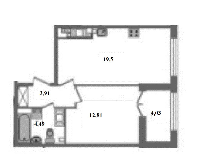 Площадь кухни 19.5 м2