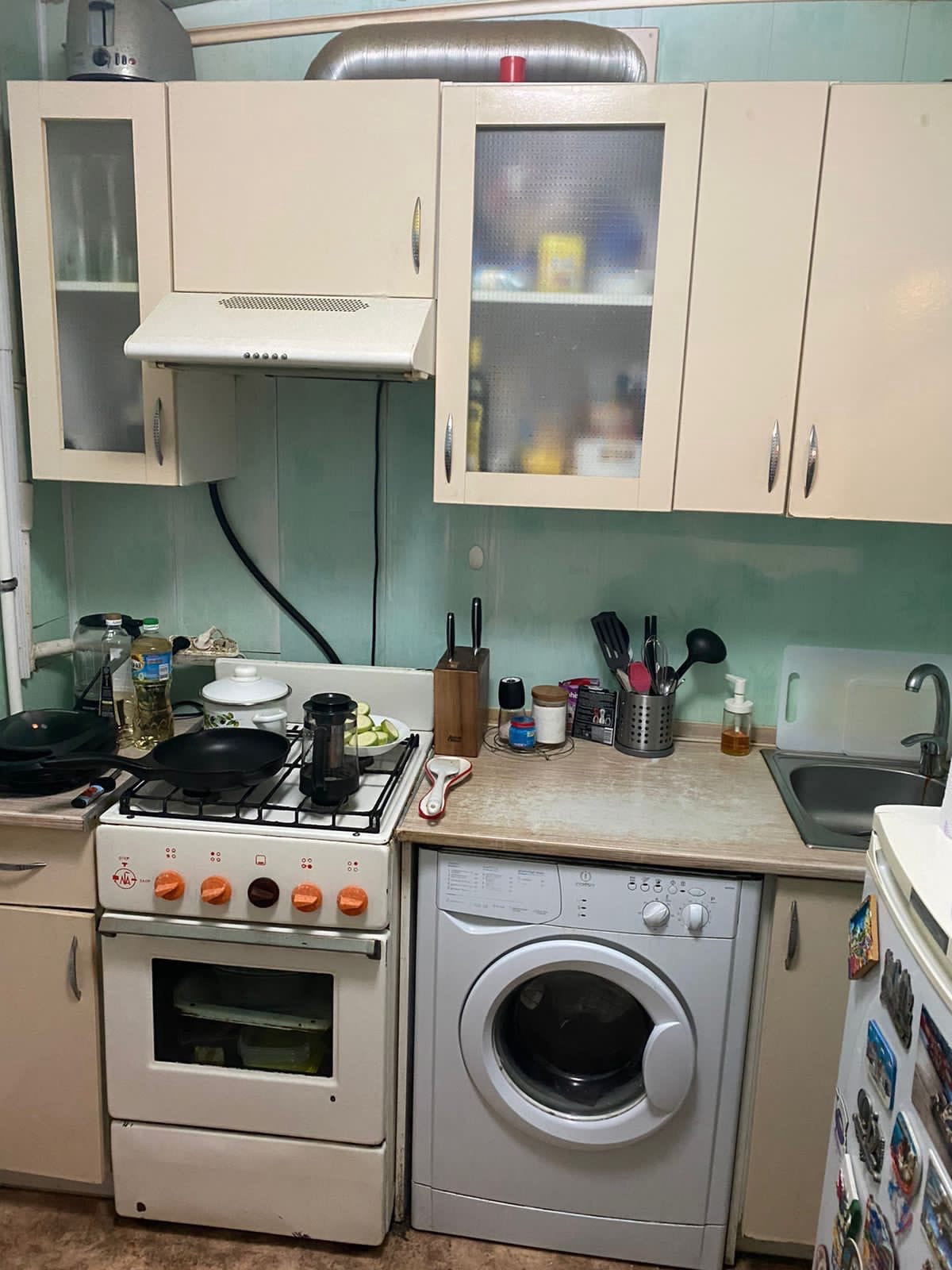 Горячая вода из центрального водоснабжения. Плита - газ.