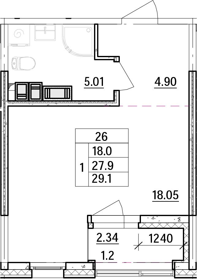 Общая площадь 29.2 м2